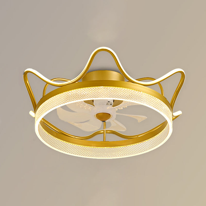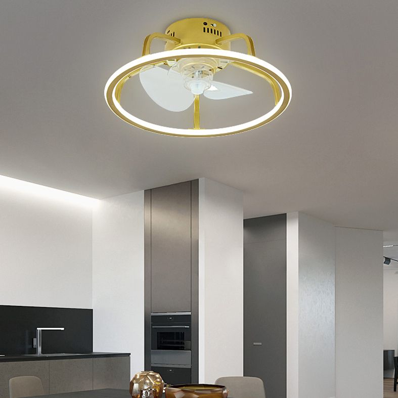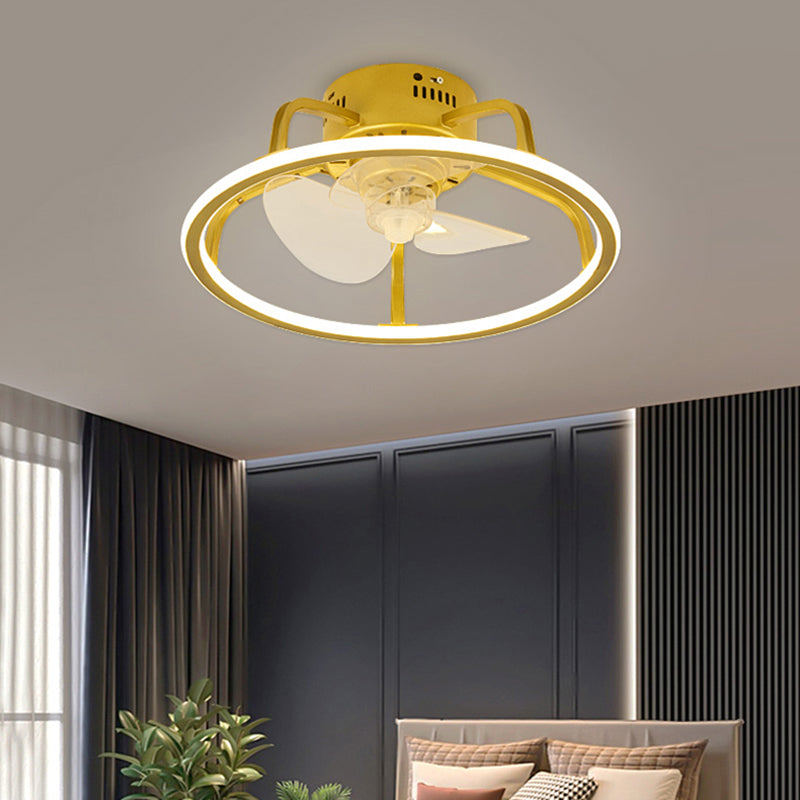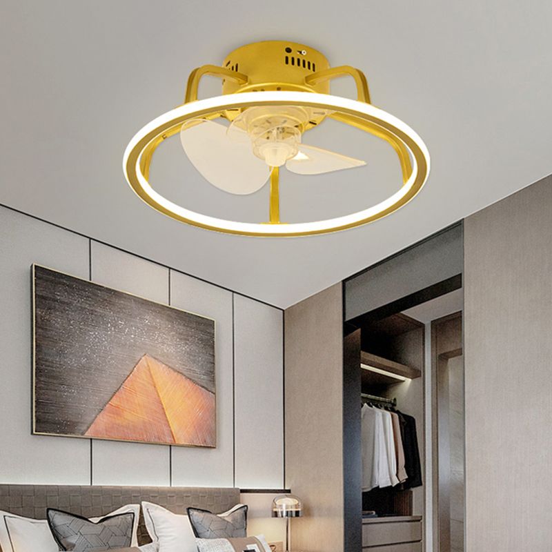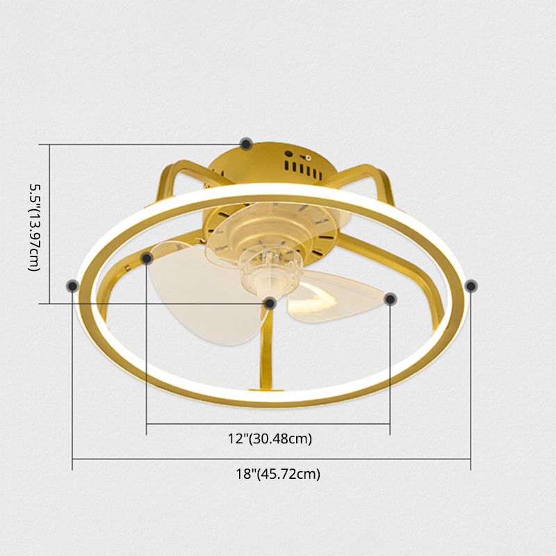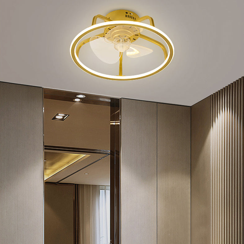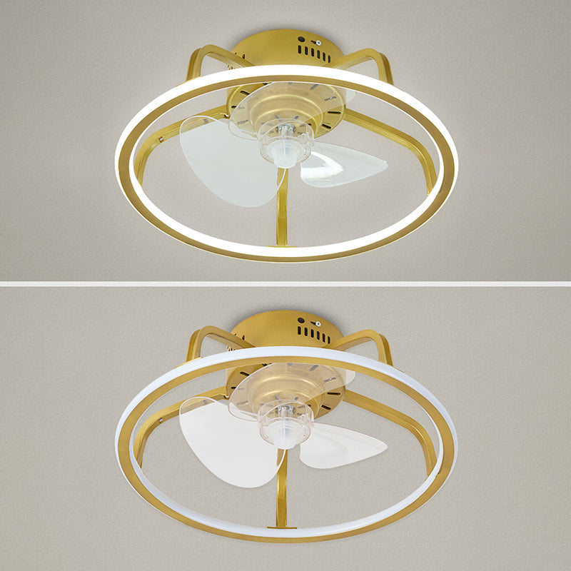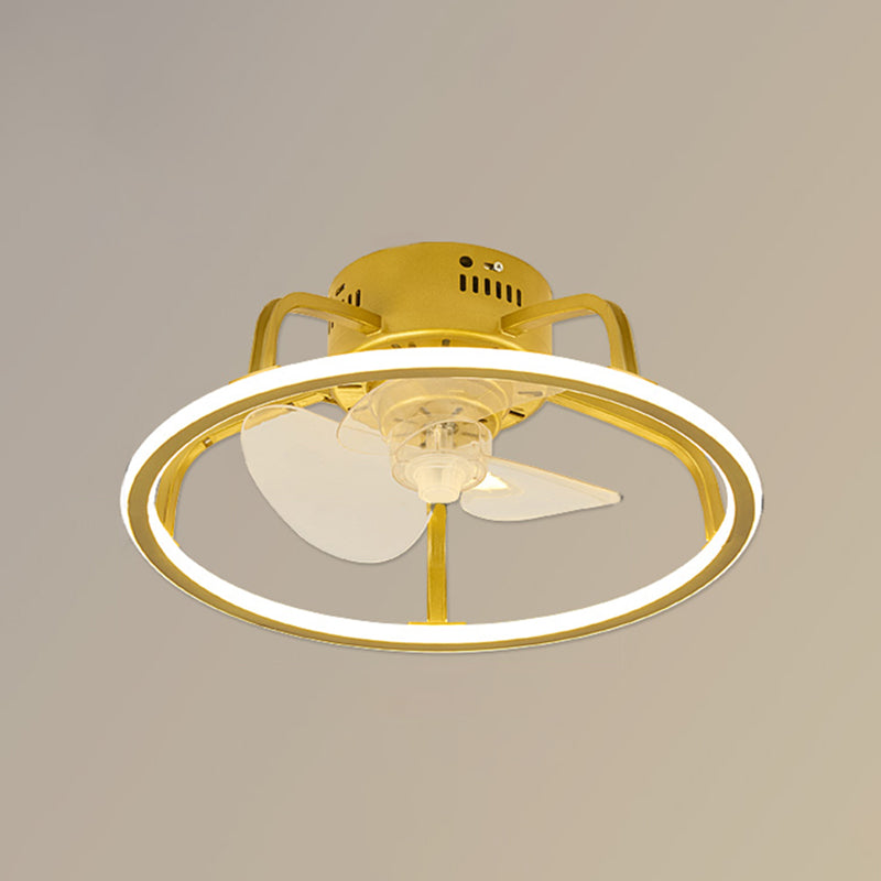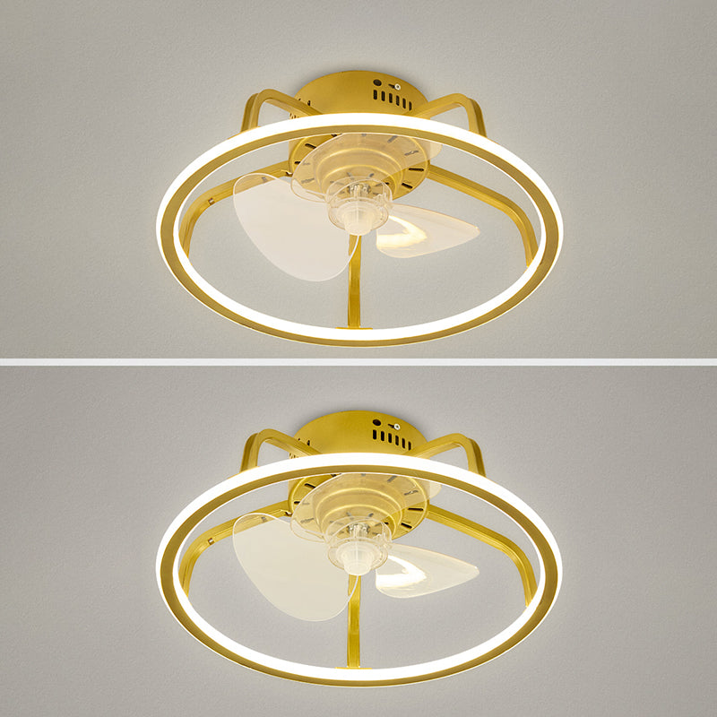 Gold Finish Circular Ceiling Fan Lamp Contemporary LED Metal Semi Mount Lighting for Bedroom
