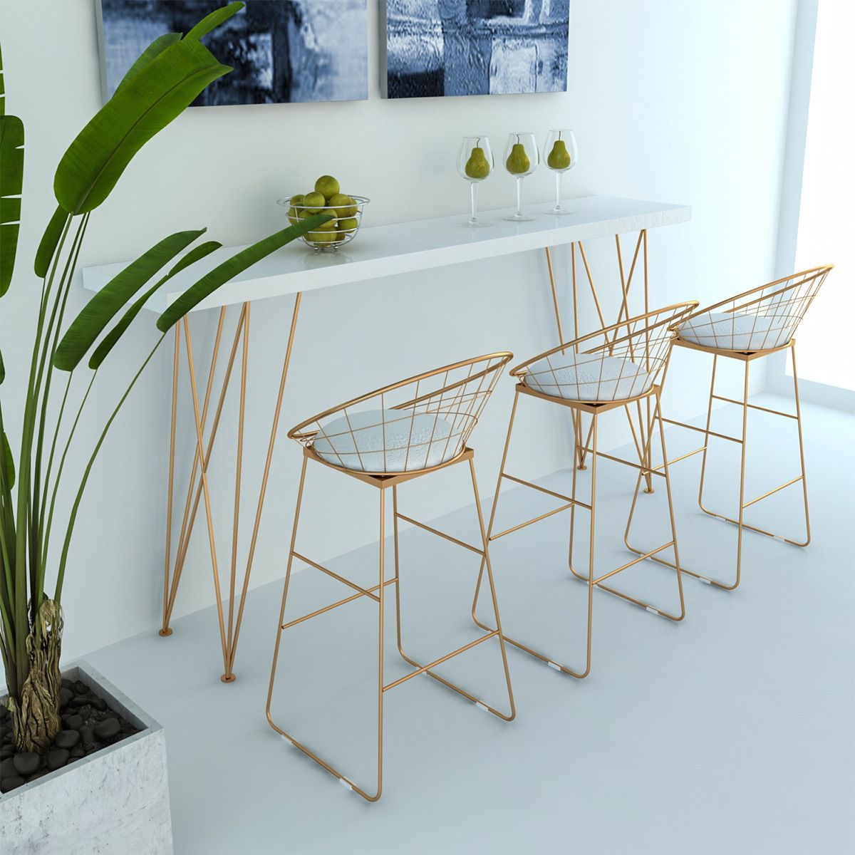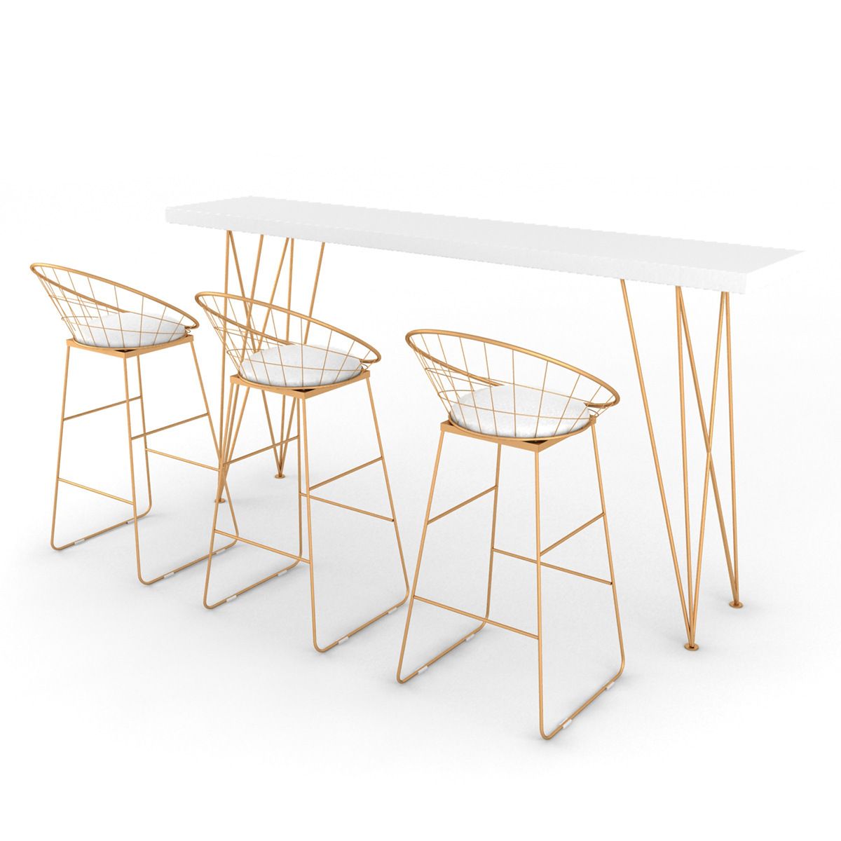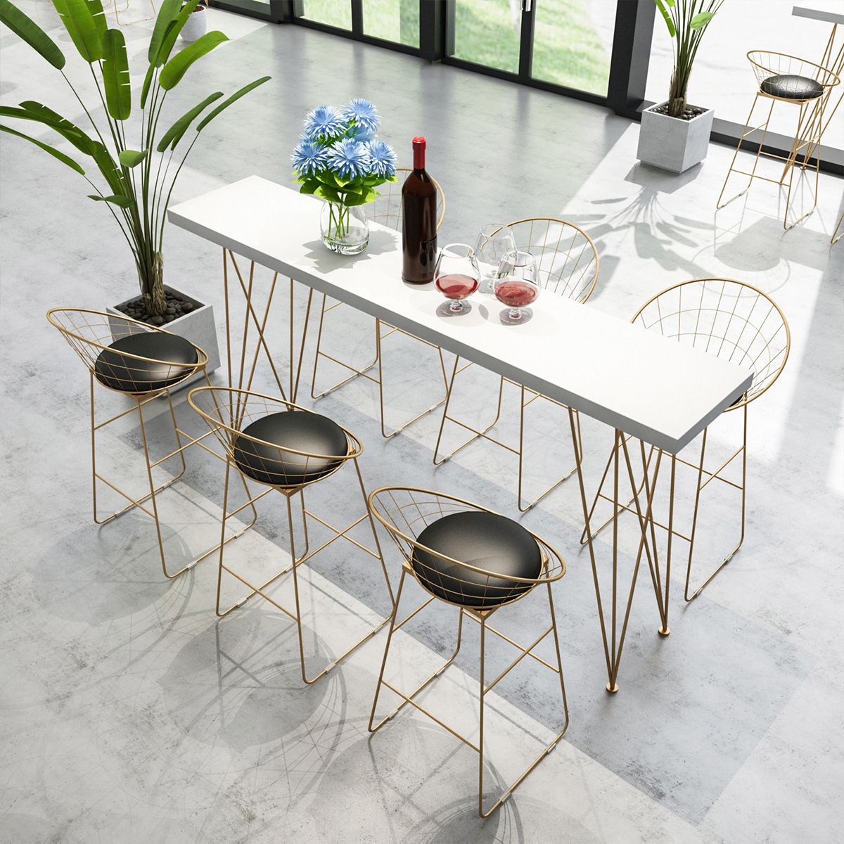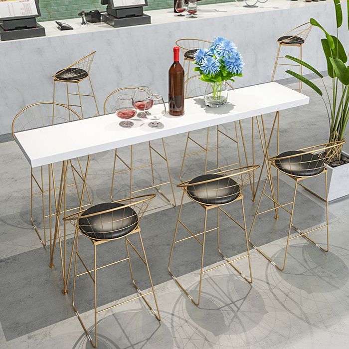 Gold Glam Style Bar Table in Iron Top and Faux Marble Milk Tea Shop Bar Table, Only Table