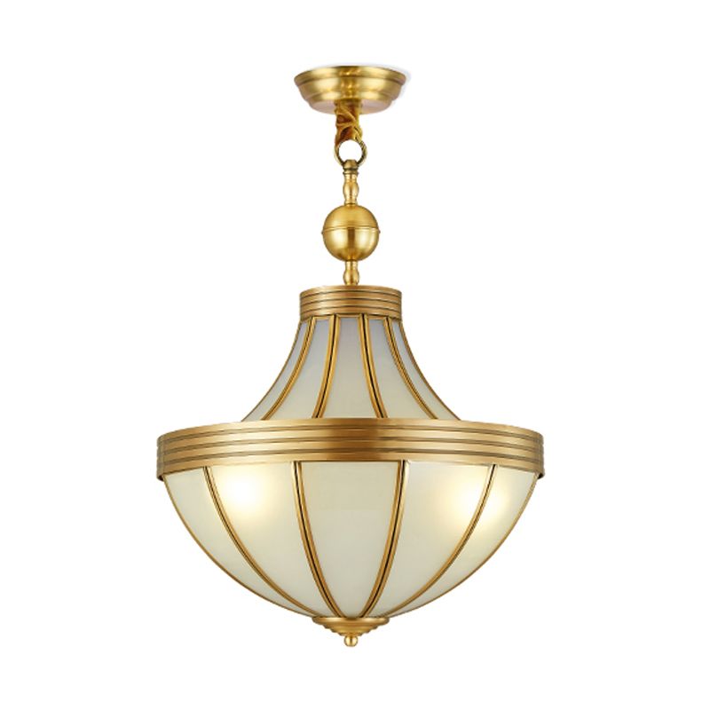 Gold Teardrop Chandelier Pendant Light Colonial Sandblasted Glass 3 Lights Dining Room Suspension Lamp