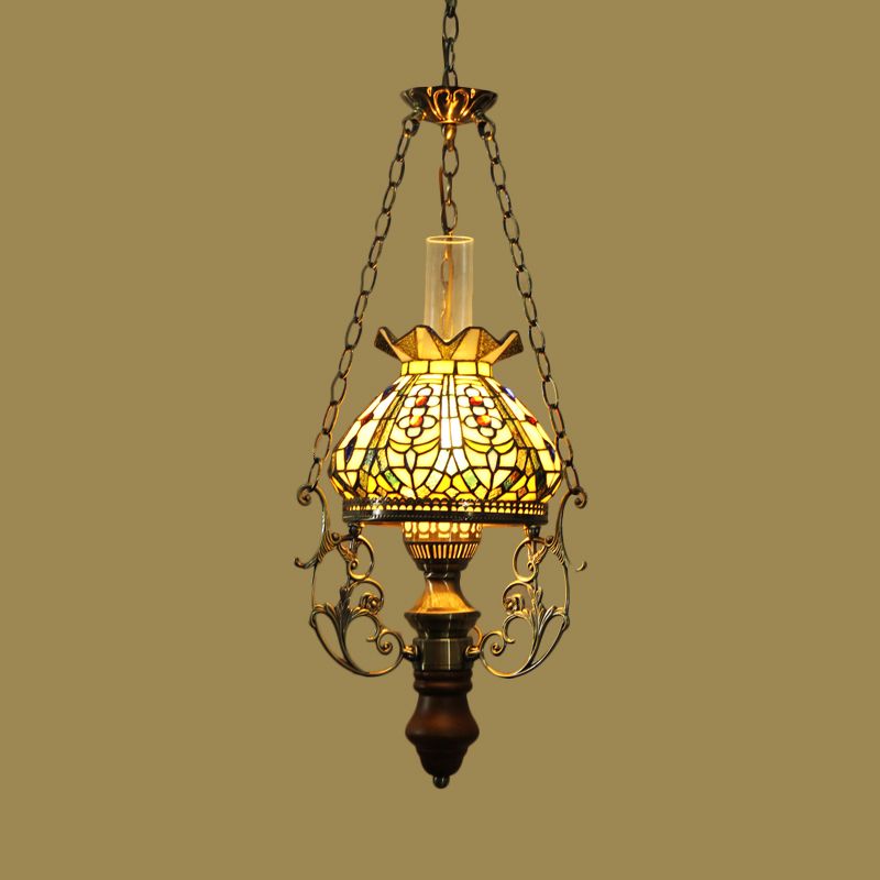 Green Blossom Hanging Ceiling Light Mediterranean 1 Light Stained Art Glass Suspension Pendant