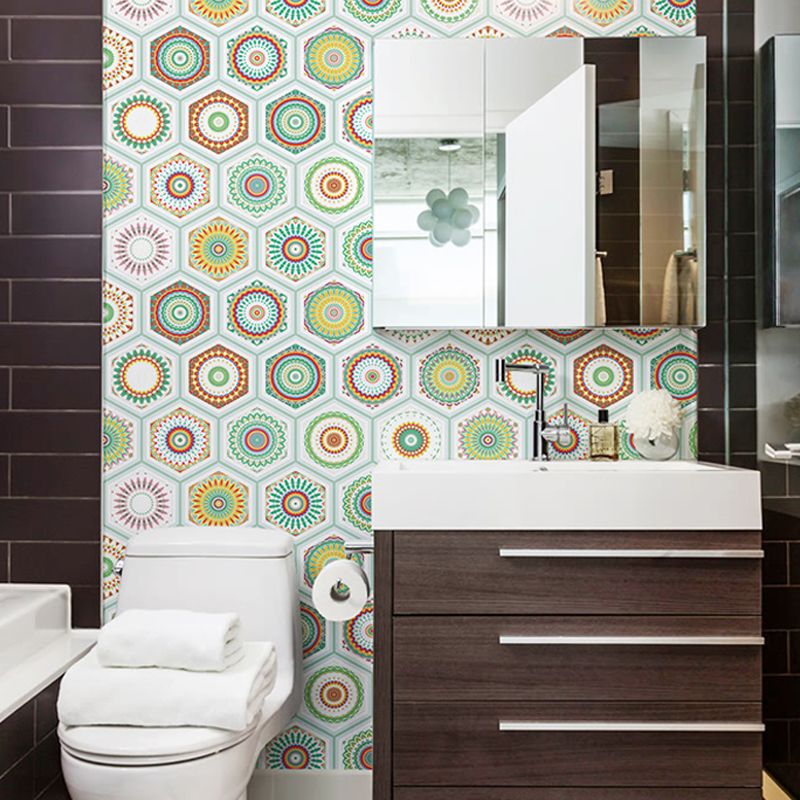 Green Boho Self Sticking Wallpaper 9.7-sq ft Mandala Pattern Wall Decor for Kitchen