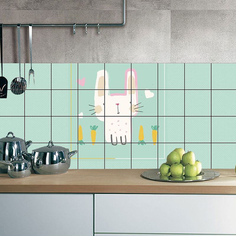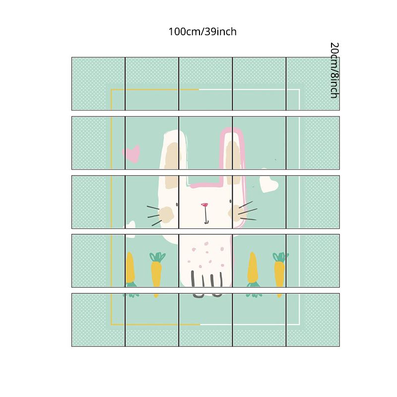 Green Cartoon Wallpaper Panels 12.9-sq ft Rabbit and Carrot Pattern Removable Wall Art for Home
