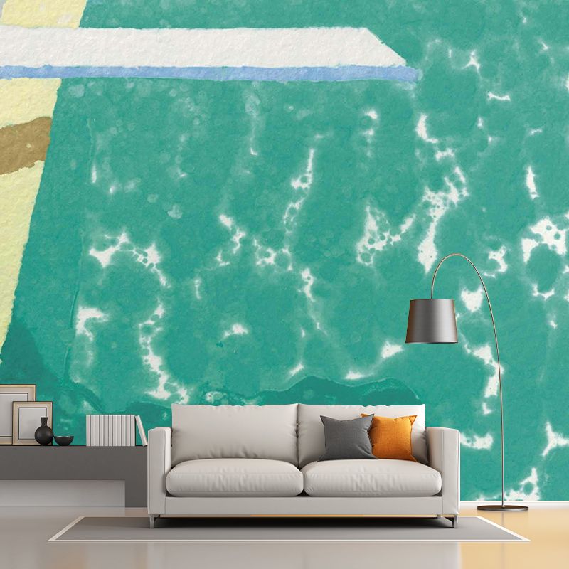 Green Pool Jump Board Mural Waterproof Art Deco Living Room Wall Covering, Custom-Print