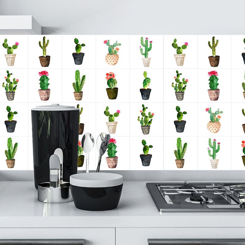 Green Potted Cactus Wallpapers 10 Pcs Easy Peel off Wall Art for Washroom, 12' L x 12" W