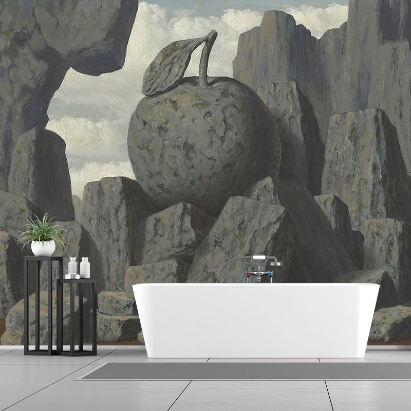 Grey Stone Mountain Wall Murals Magritte Artwork Surrealism Waterproof Wall Covering for Bedroom