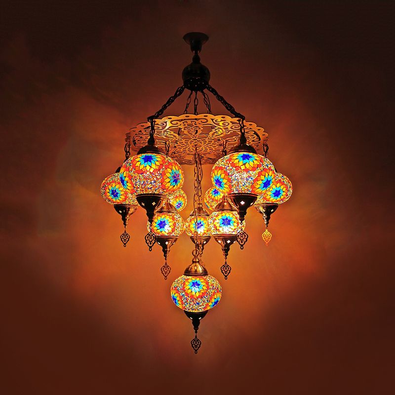 Hand Cut Glass White/Yellow/Orange Chandelier Lamp Oval 10 Lights Traditional Suspension Light for Dining Room