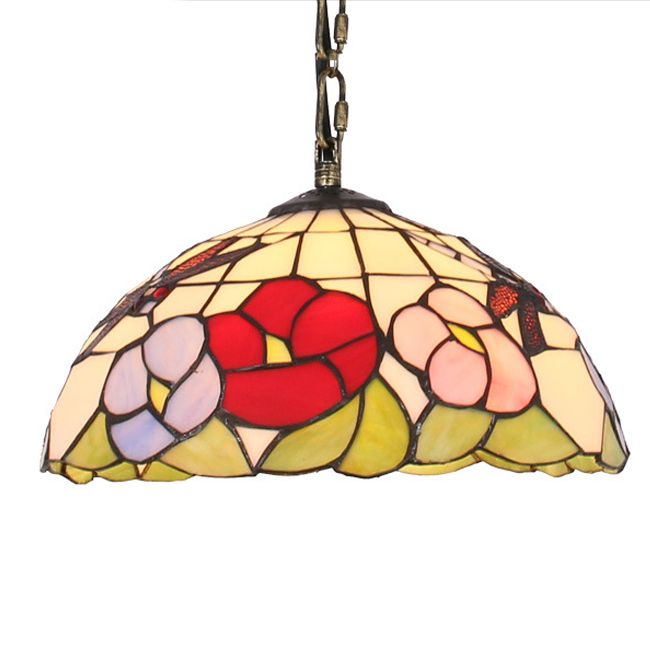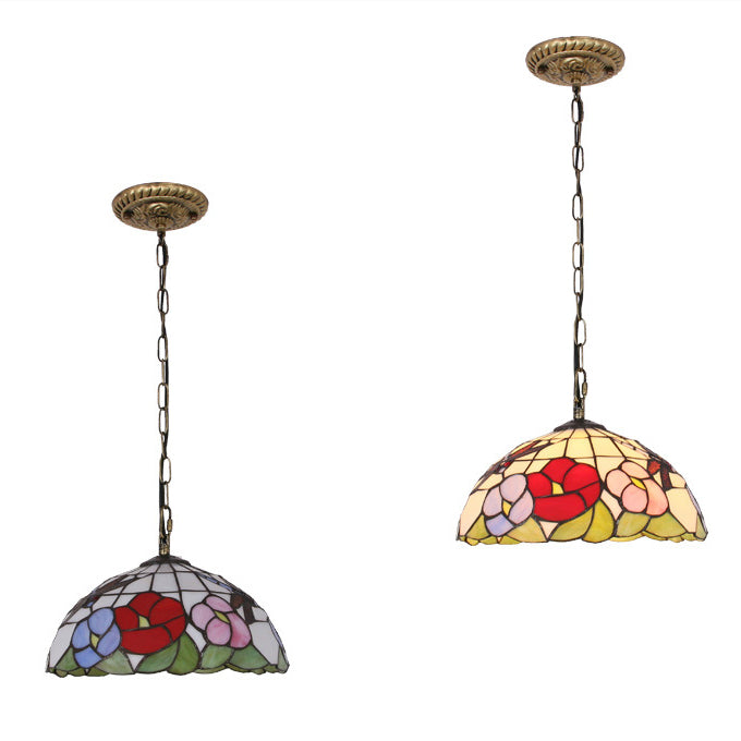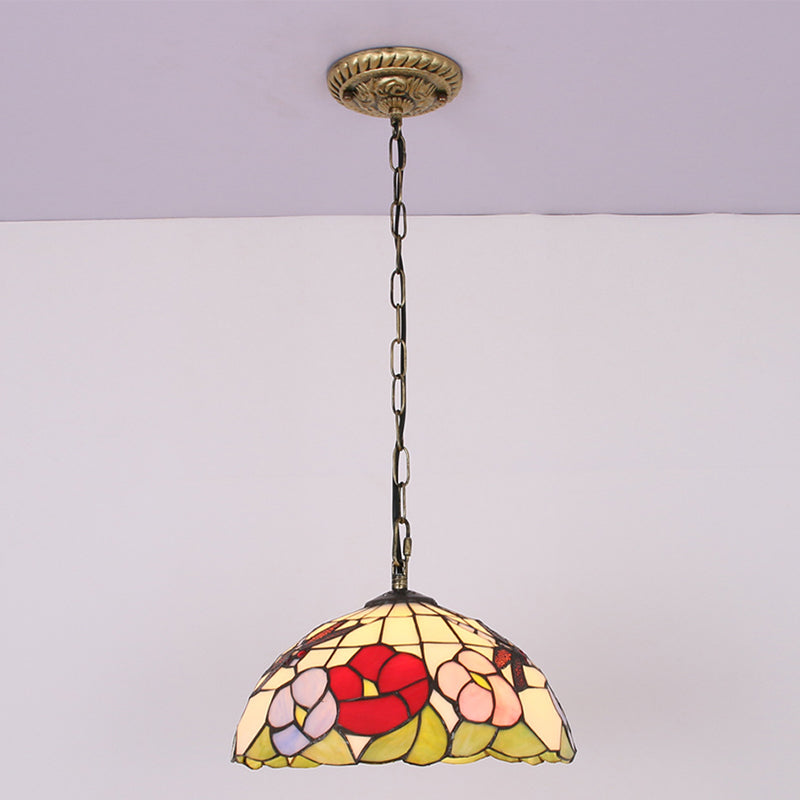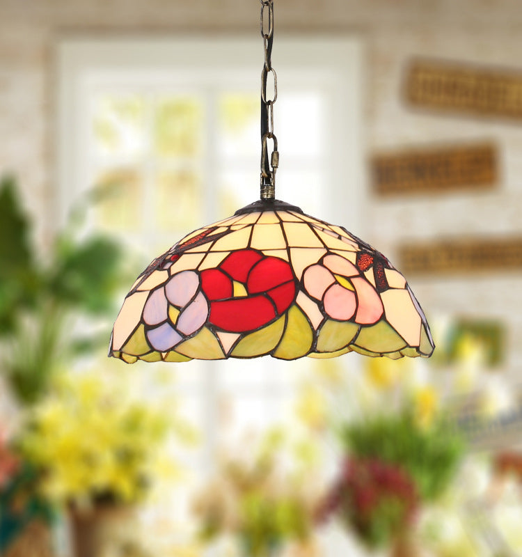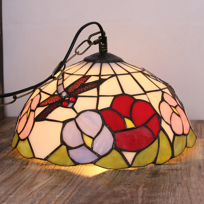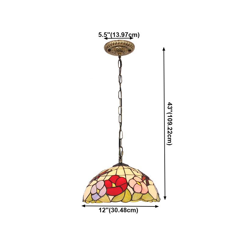 Handcrafted Stained Glass Pendulum Lights Dome Baroque Down Lighting Pendant for Bedroom