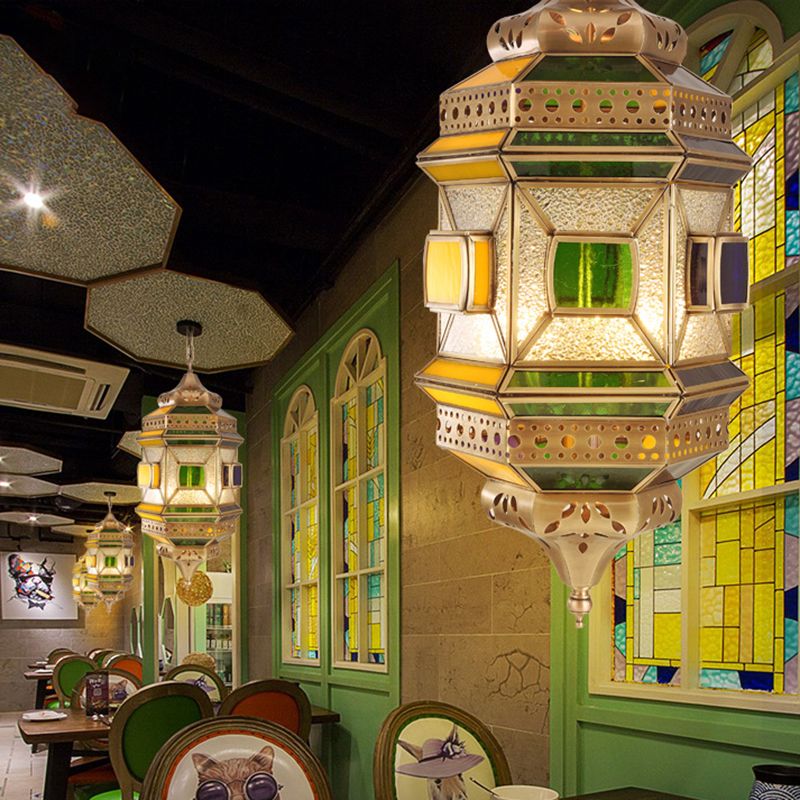 Hexagonal Corridor Pendant Chandelier Arab Metal 4 Lights Brass Finish Ceiling Suspension Lamp