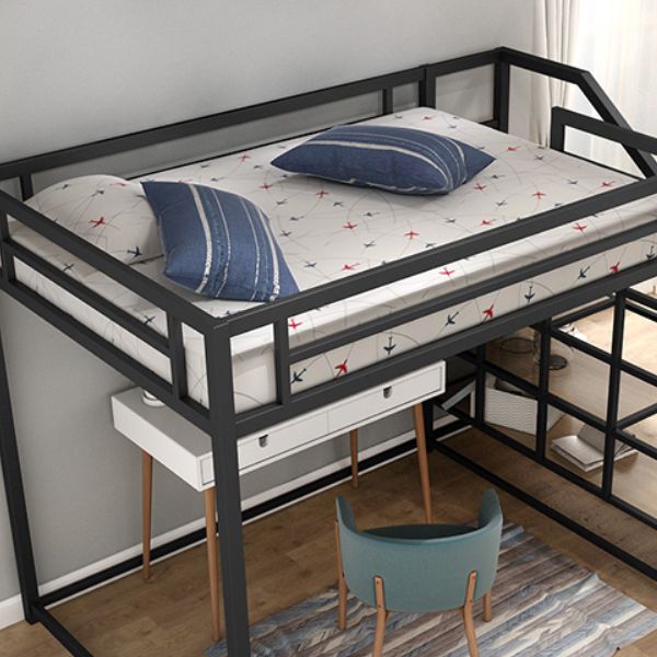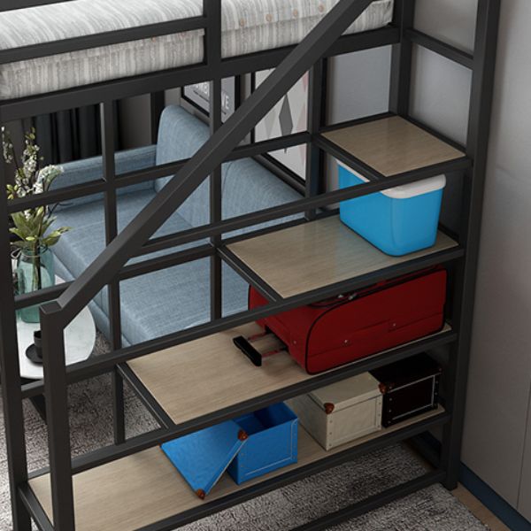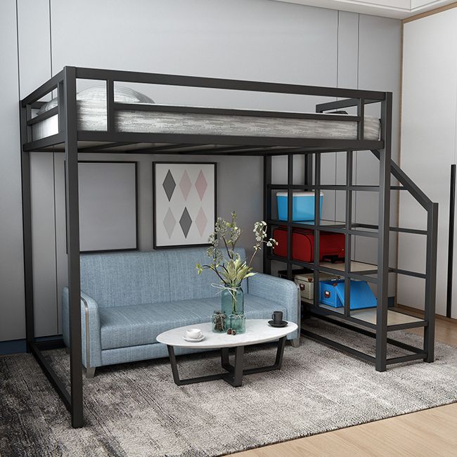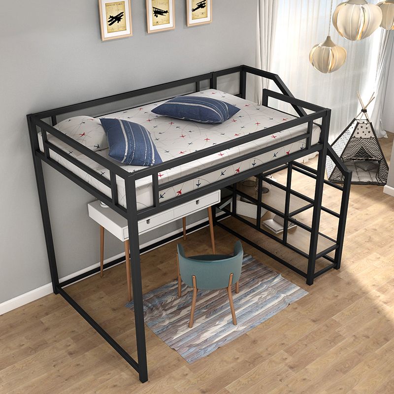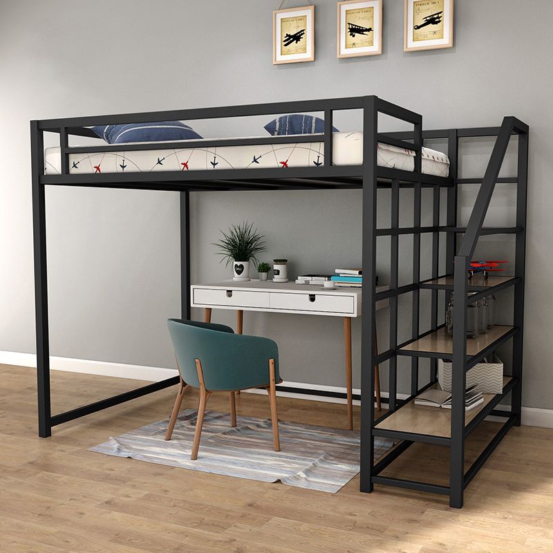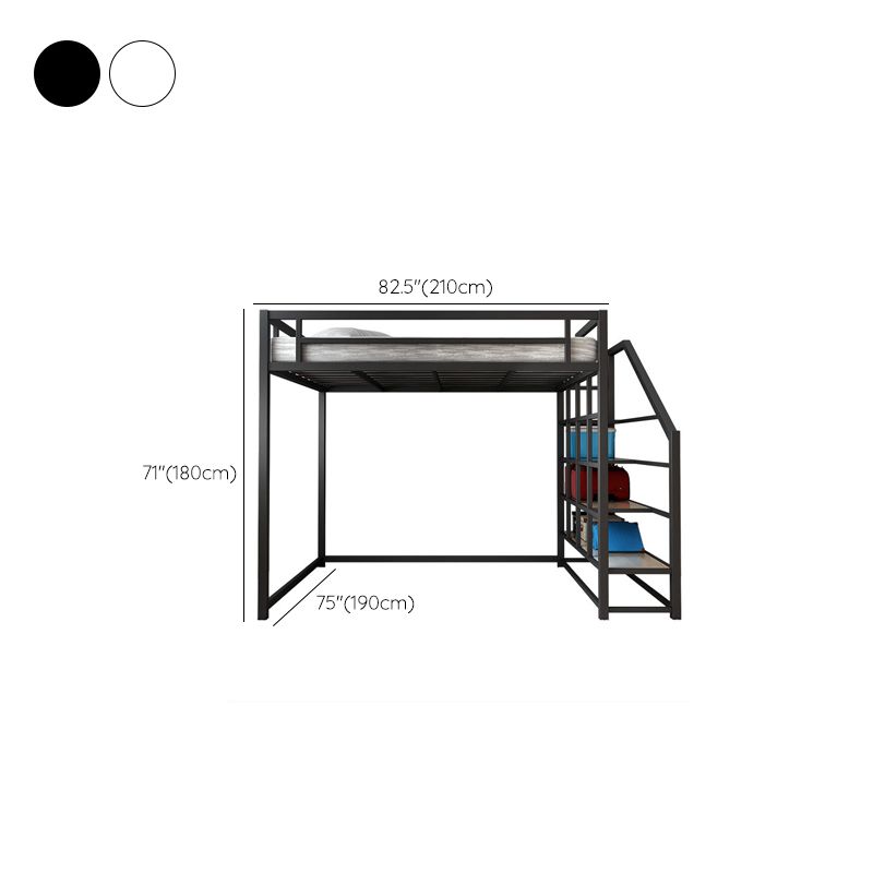 High Loft Bed with Stairway Modern Metallic Beds in Black & White