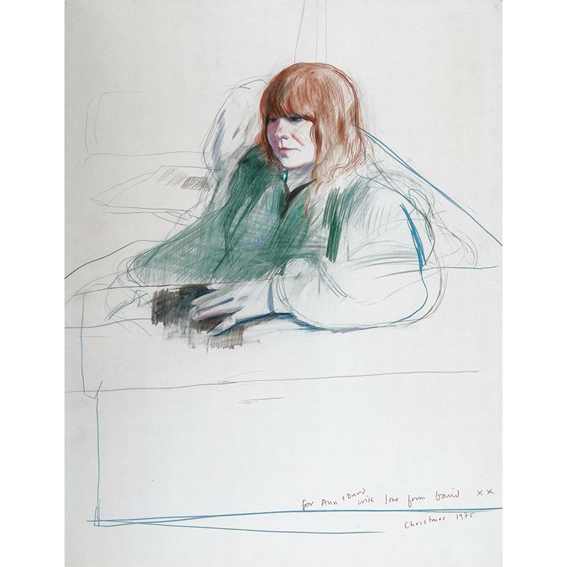 Hockney Pencil Drawing Woman Mural Artistic Smooth Wall Covering in Brown on White