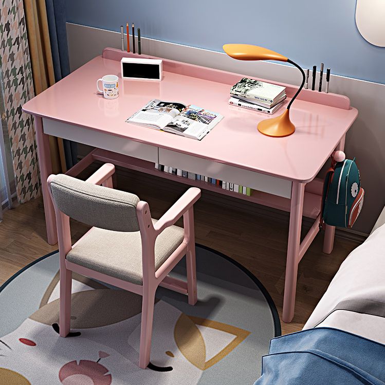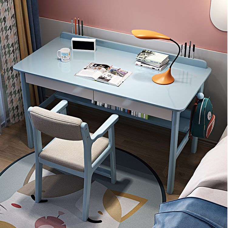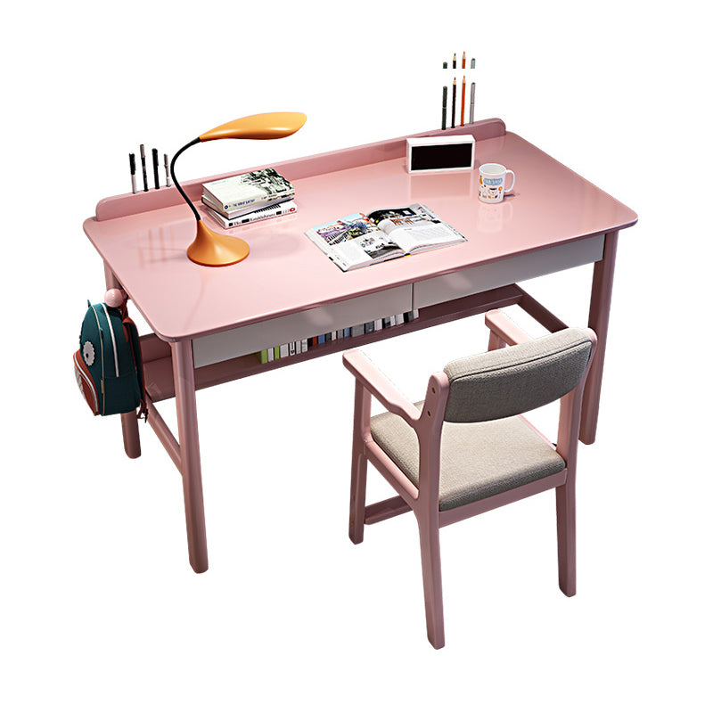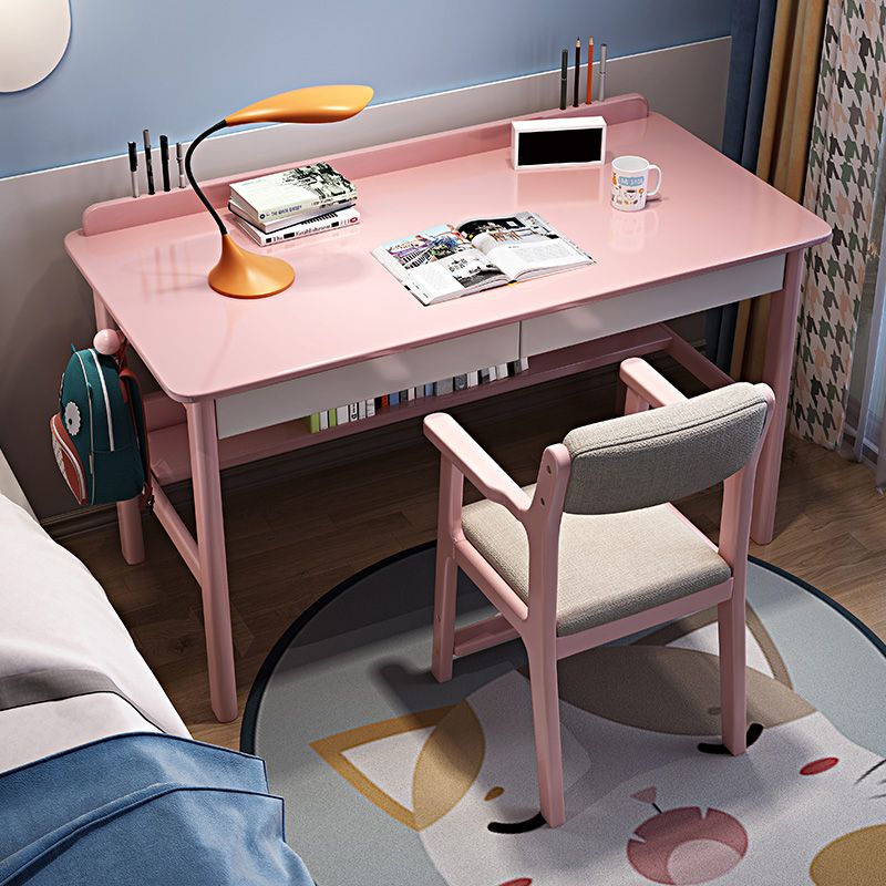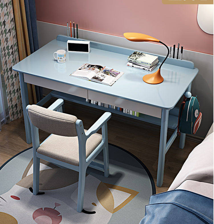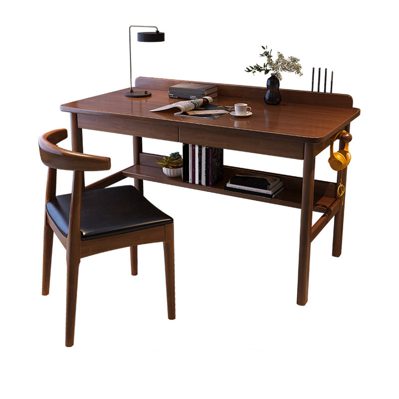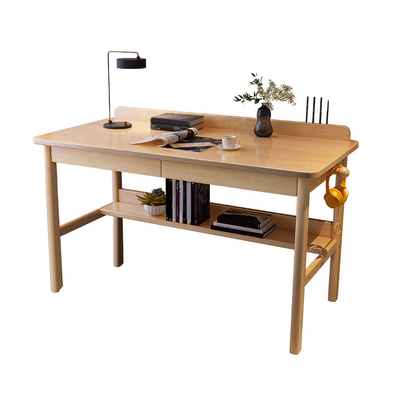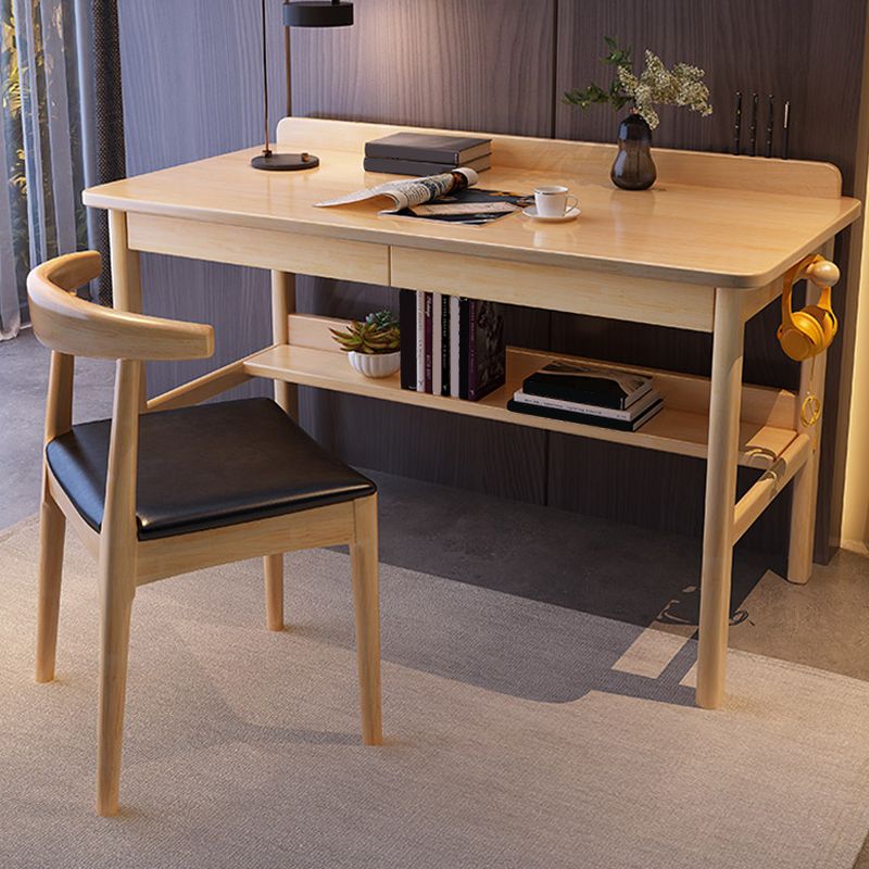 Home Solid Wood Study Desk with Storage Drawer with Bookshelf Writing Desk