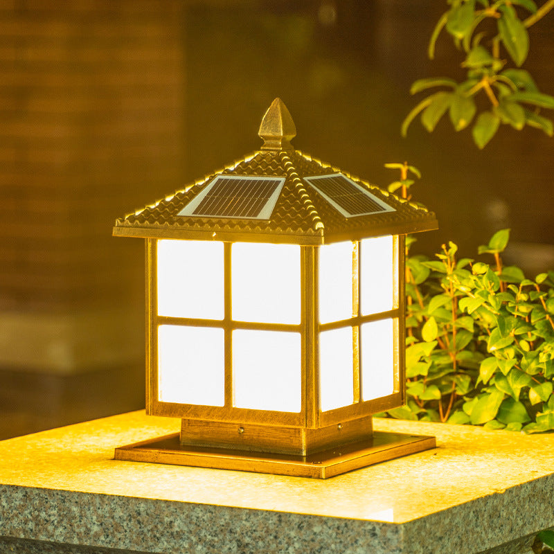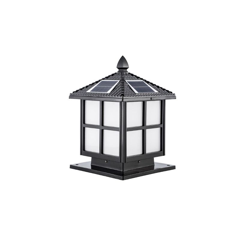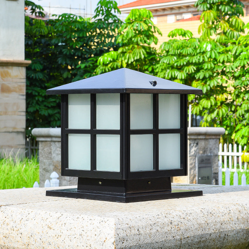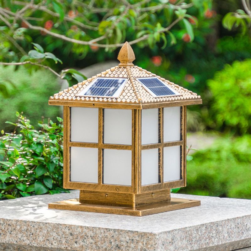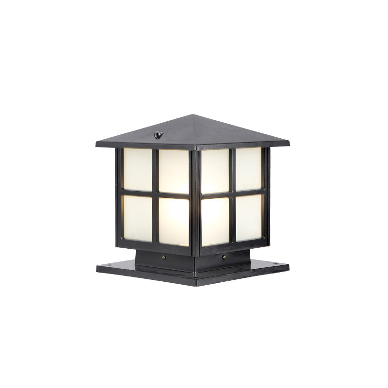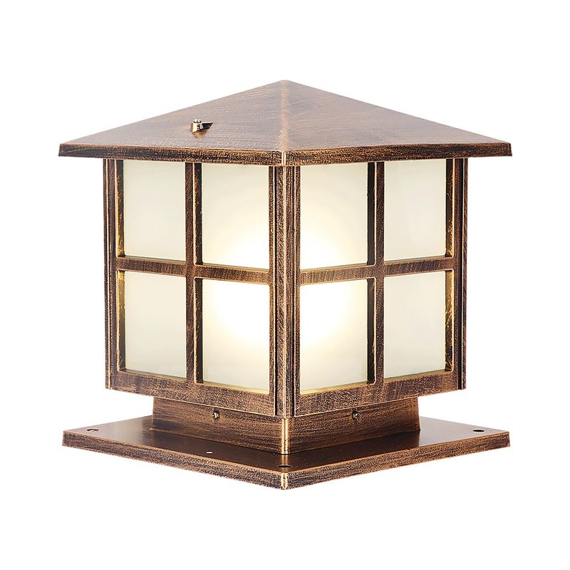House Shaped Aluminum Post Lighting Vintage Single-Bulb Courtyard Landscape Lamp with Frosted Acrylic Shade
