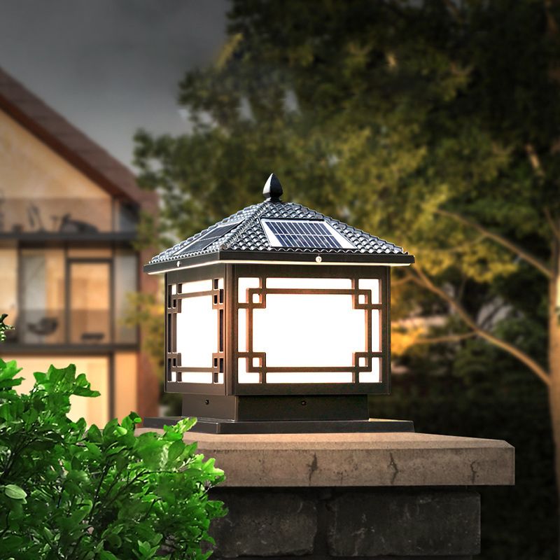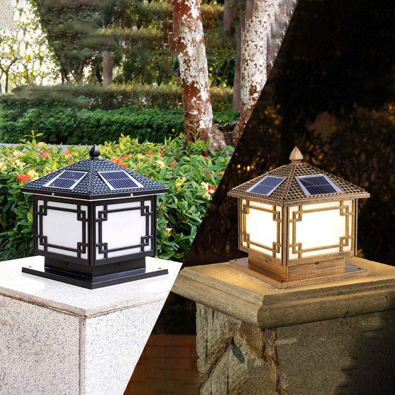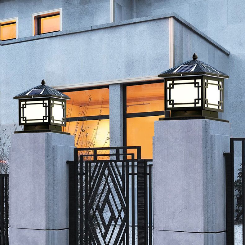 Household Pillar Lamp Creative Solar Lamp with Acrylic Shade for Backyard