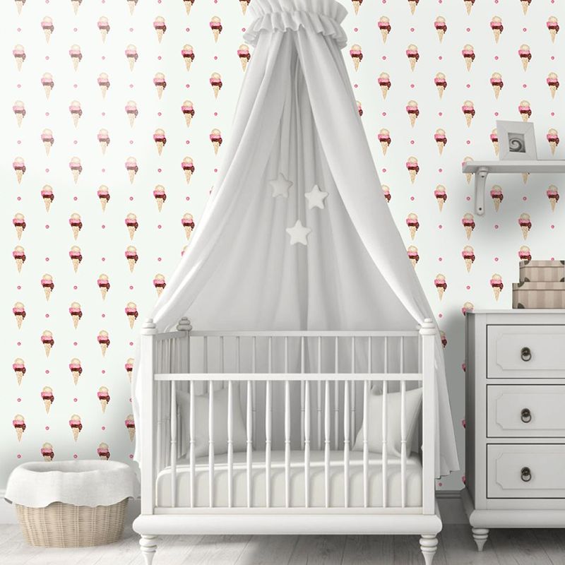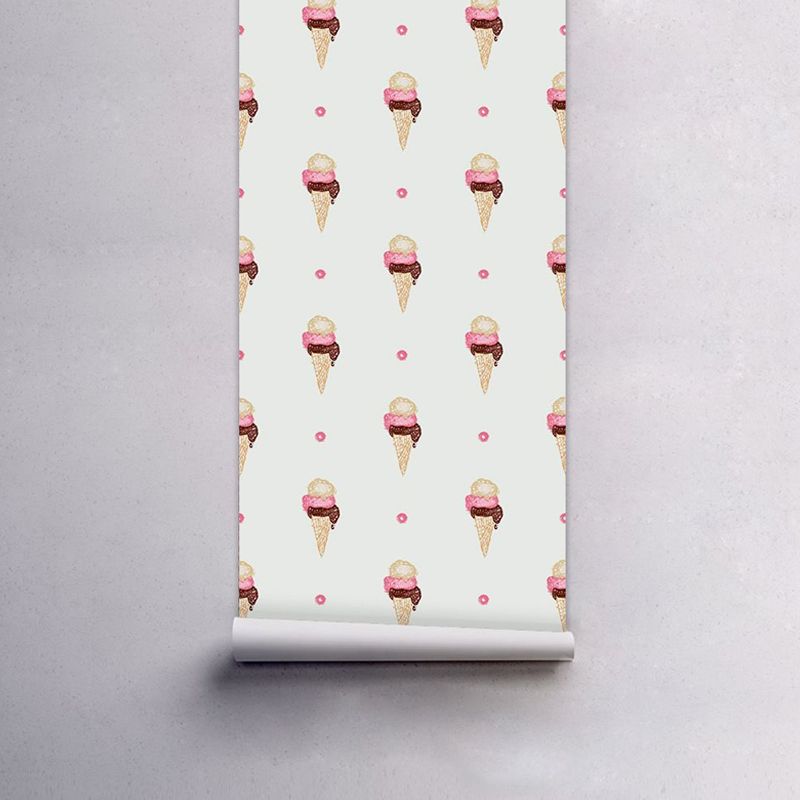 Ice Cream Adhesive Wallpaper Panels Cartoon Yummy Food Wall Art in Brown, 4' x 20.5"