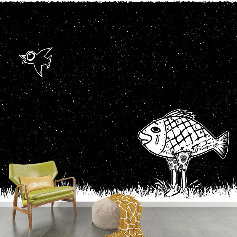 Illustration Cartoon Mural Environment Friendly Wallpaper for Kid's Bedroom