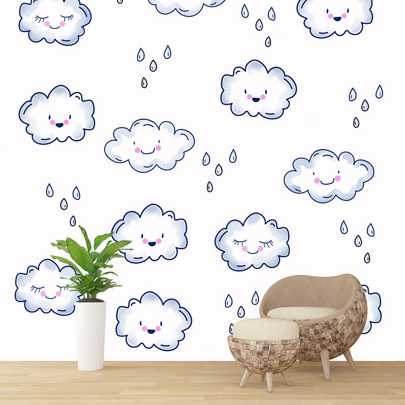 Illustration Stain Resistant Mural Cartoon Cloud Living Room Wall Mural