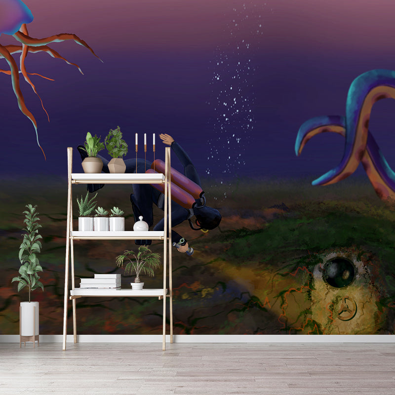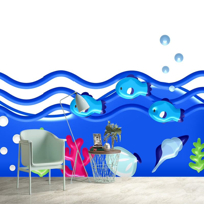 Illustration Stain Resistant Mural Wallpaper Sea World Indoor Wall Mural