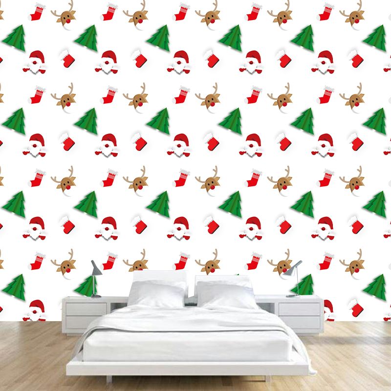 Illustration Stain Resistant Wallpaper Christmas Decorations Living Room Wall Mural