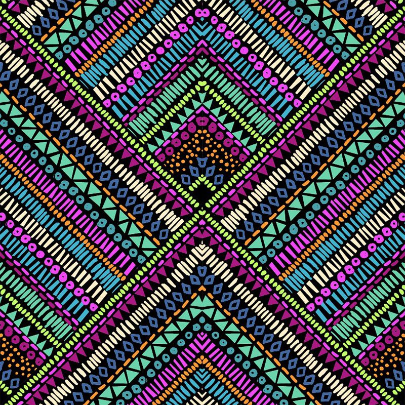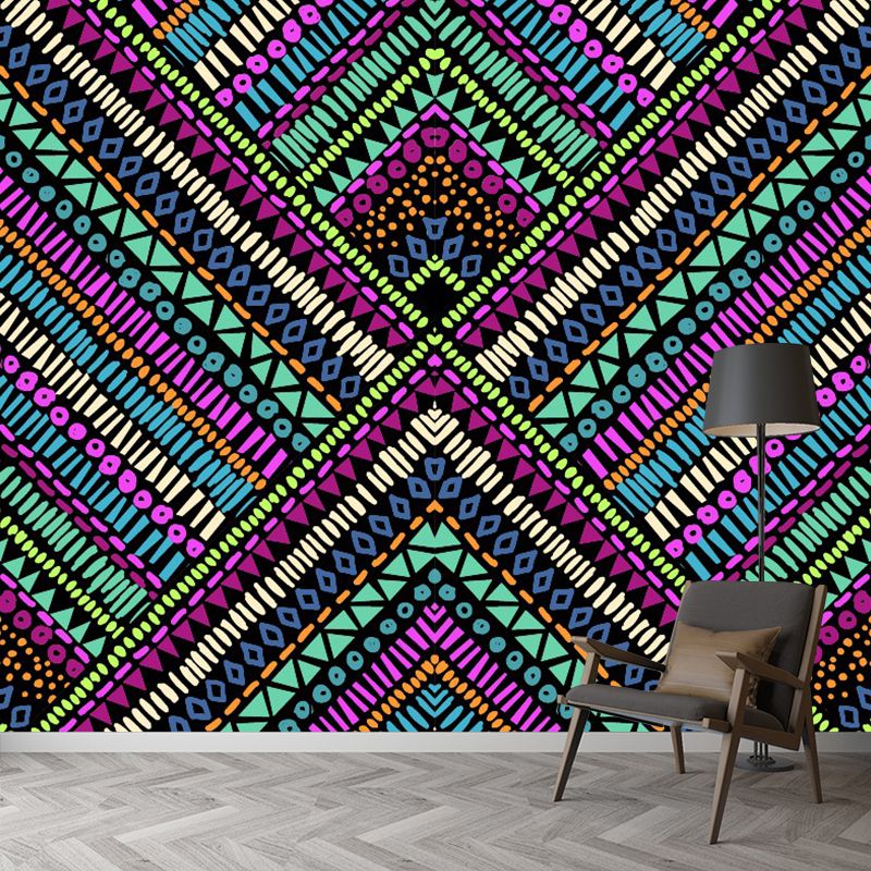 Illustration Triangle Murals for Accent Wall Seamless Pattern Wall Covering in Rose Red-Blue-Green, Waterproof