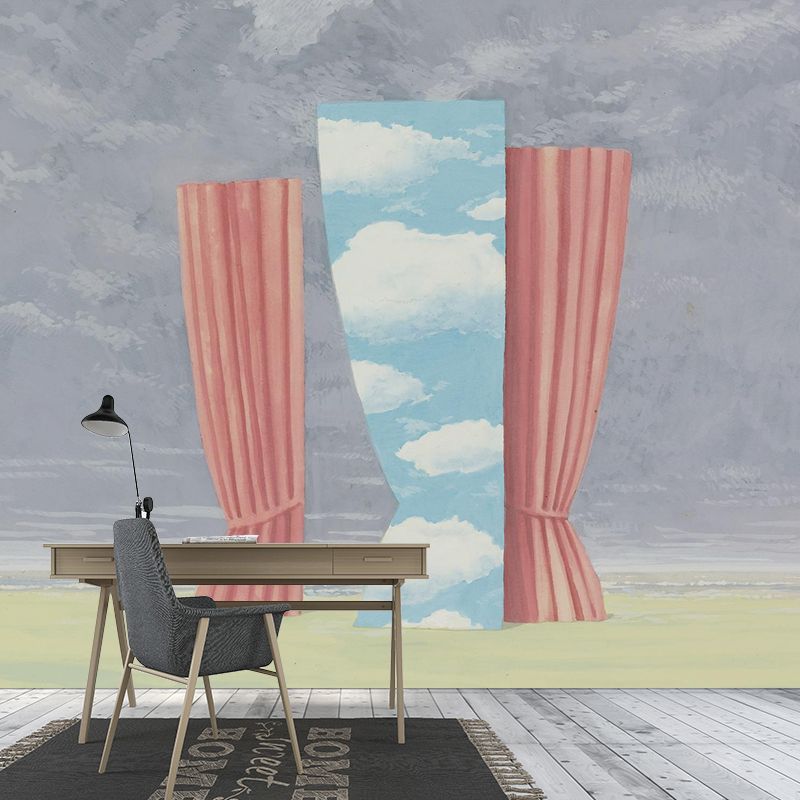 Impressive Curtains Drawing Mural Decal for Living Room, Purple-Pink, Made to Measure