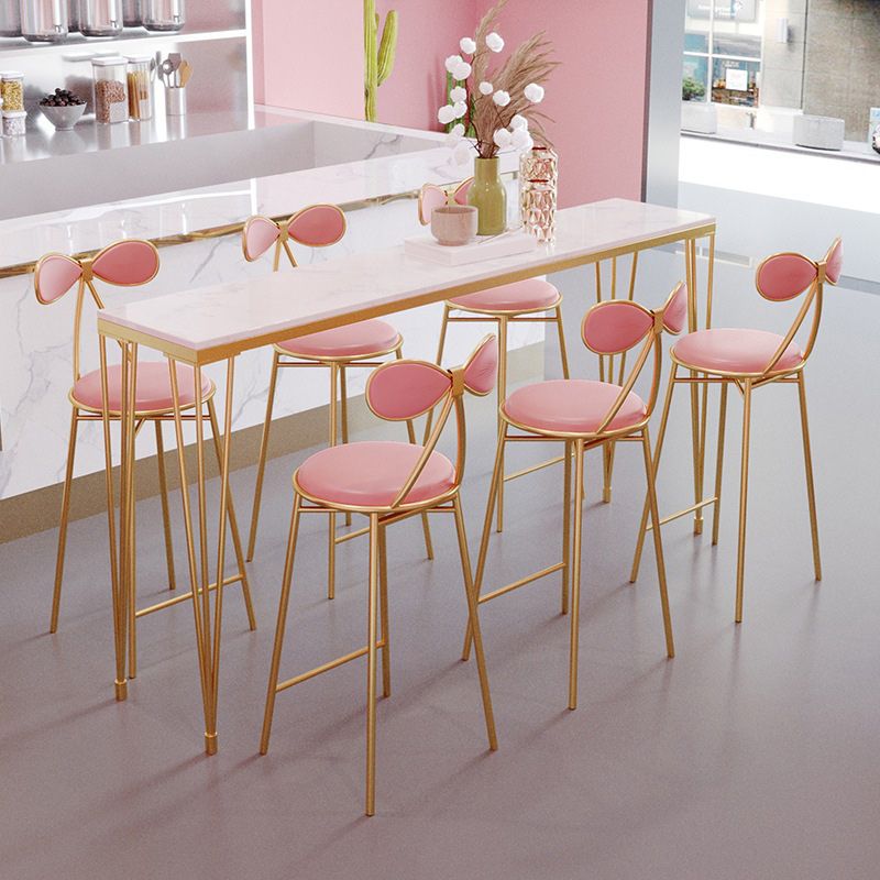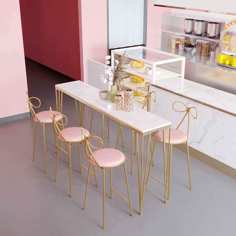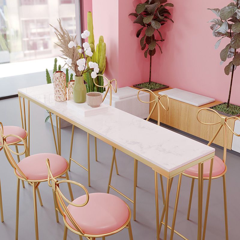 Indoor Marble Cocktail Bar Table Modern Fixed Table Gold and White Bar Height Table