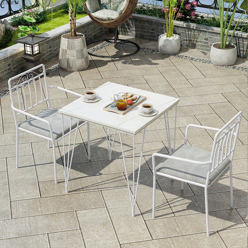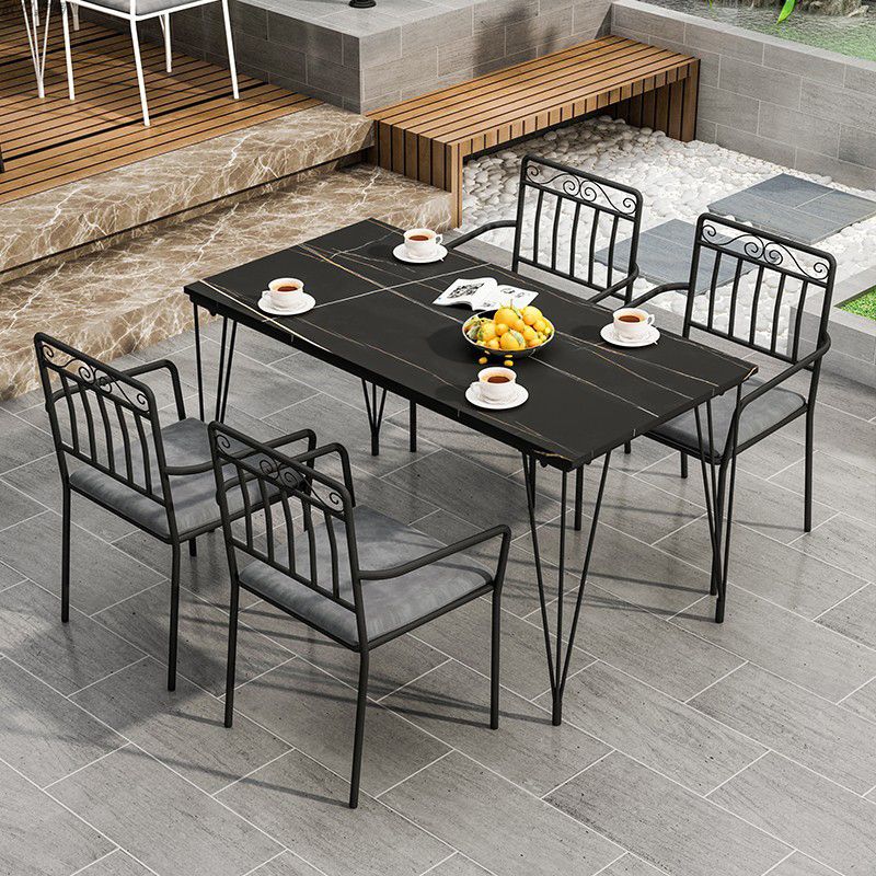 Industrial 1/3/5 Pieces Metal Dining Set Stone Dining Table Set
