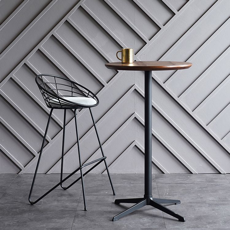 Industrial Aluminium Bar Dining Table Round Indoor Bistro Table with Engineered Wood Top