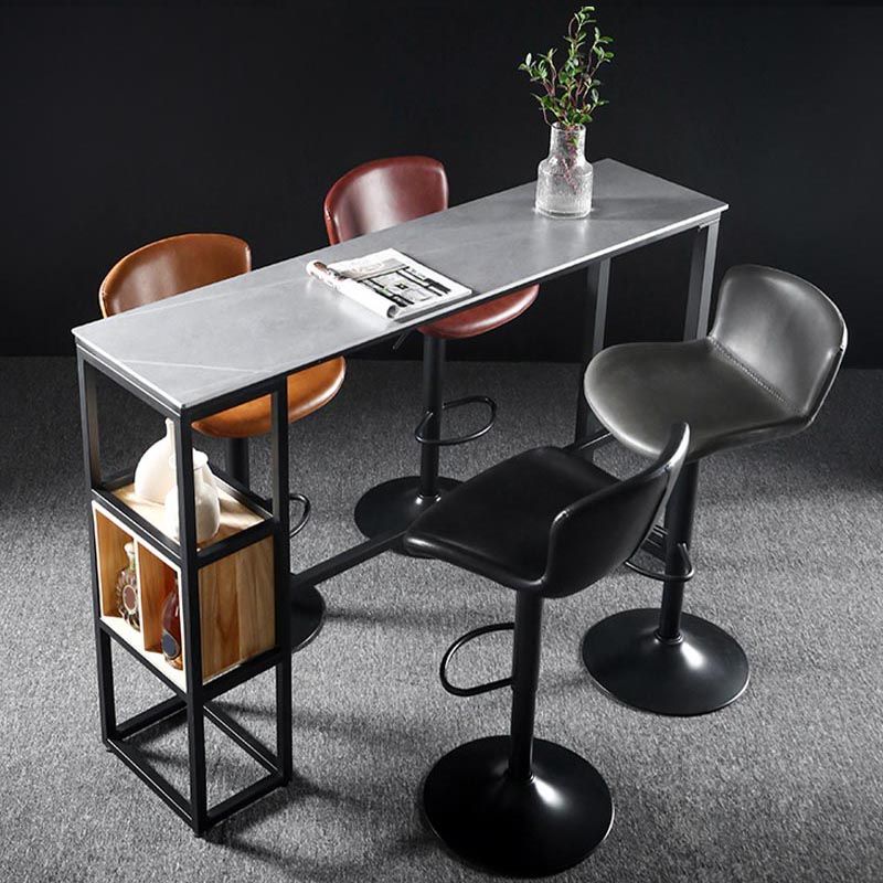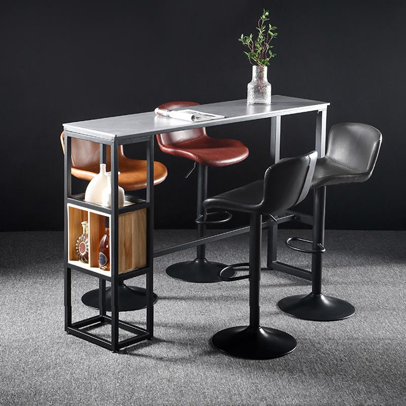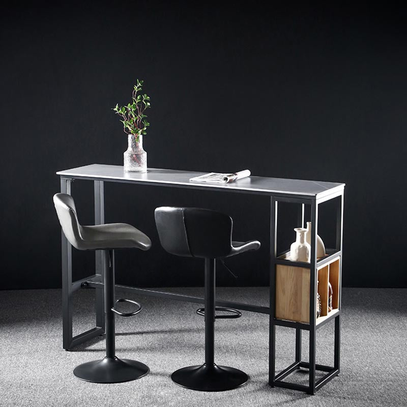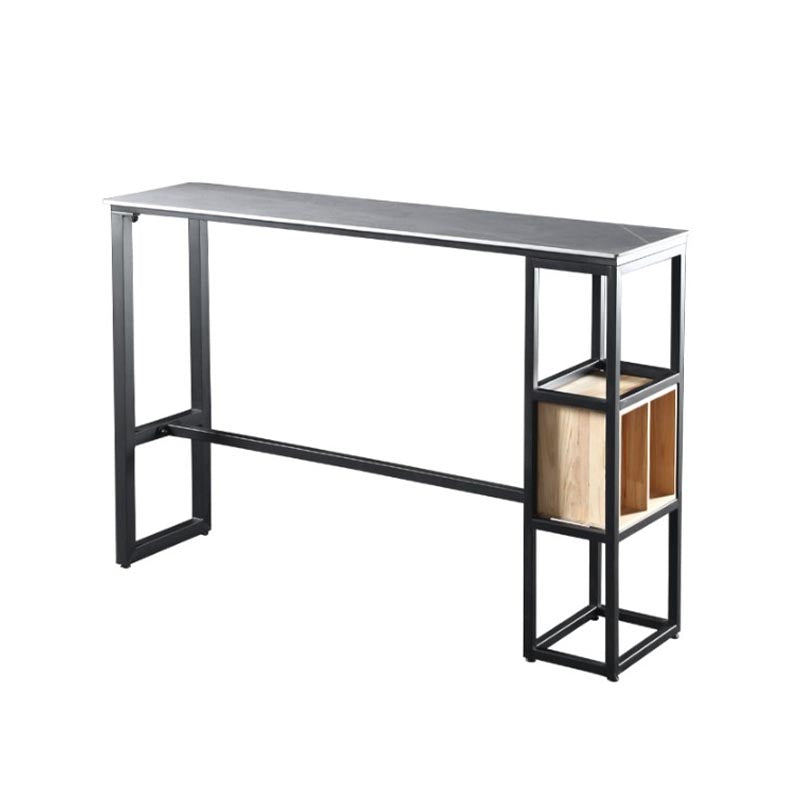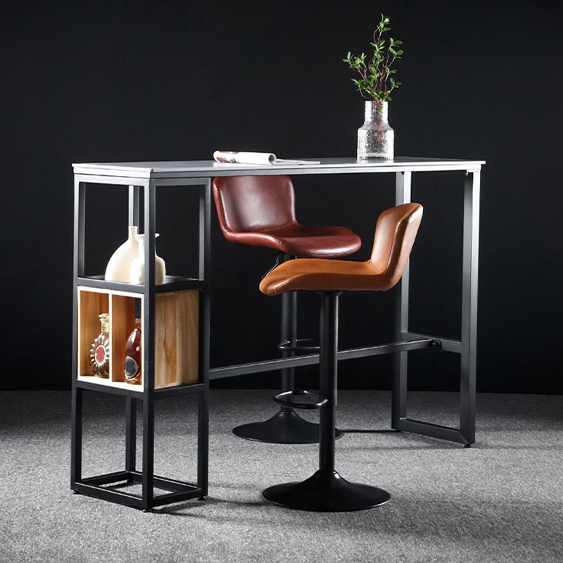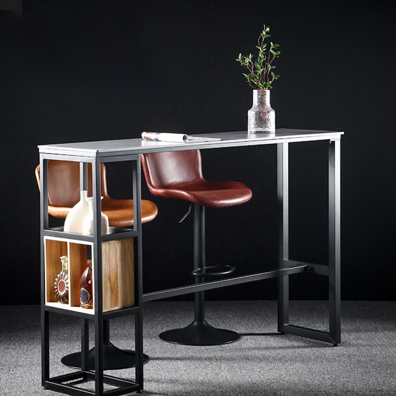 Industrial Bar Table 42-inch Height Stone Top Bistro Table with Storage Shelf