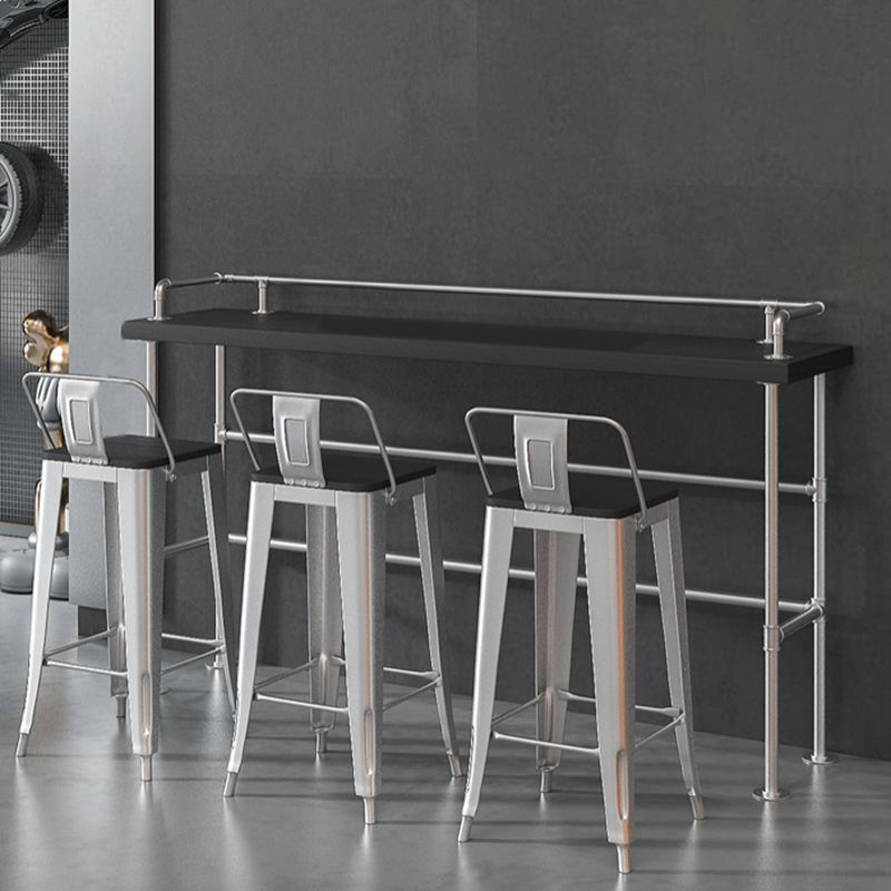 Industrial Black Wood Pub Table with Rectangle Table Top Silver Trestle Table - 42" H