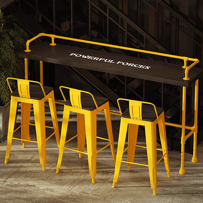 Industrial Black Wood Pub Table with Rectangle Table Top Yellow Trestle Table - 42" H