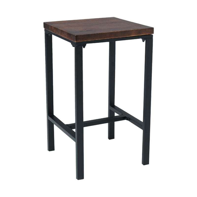 Industrial Brown Pine Bar Dining Table Square Indoor Bistro Table with Trestle Pedestal