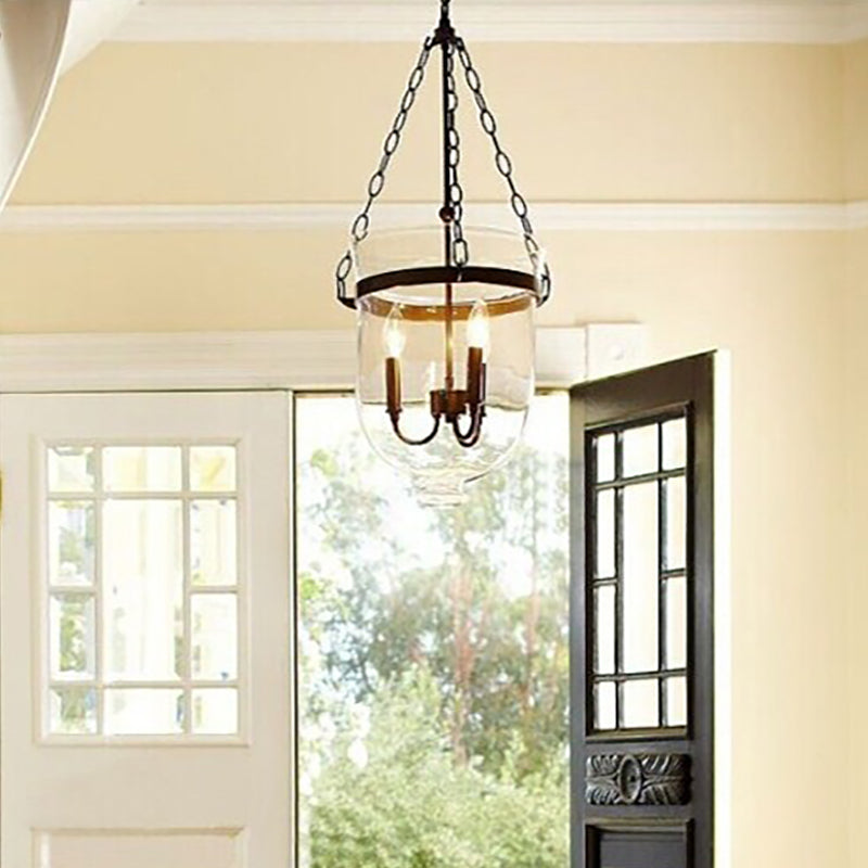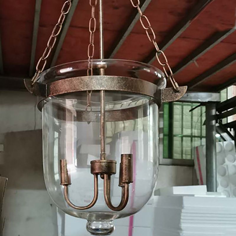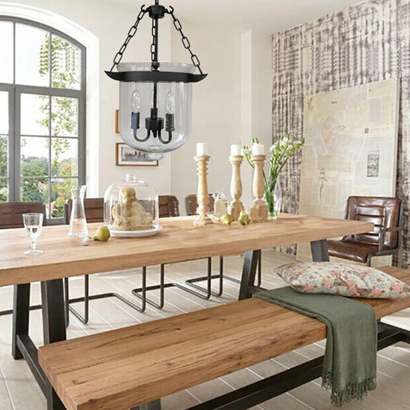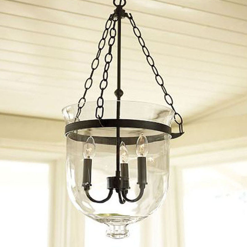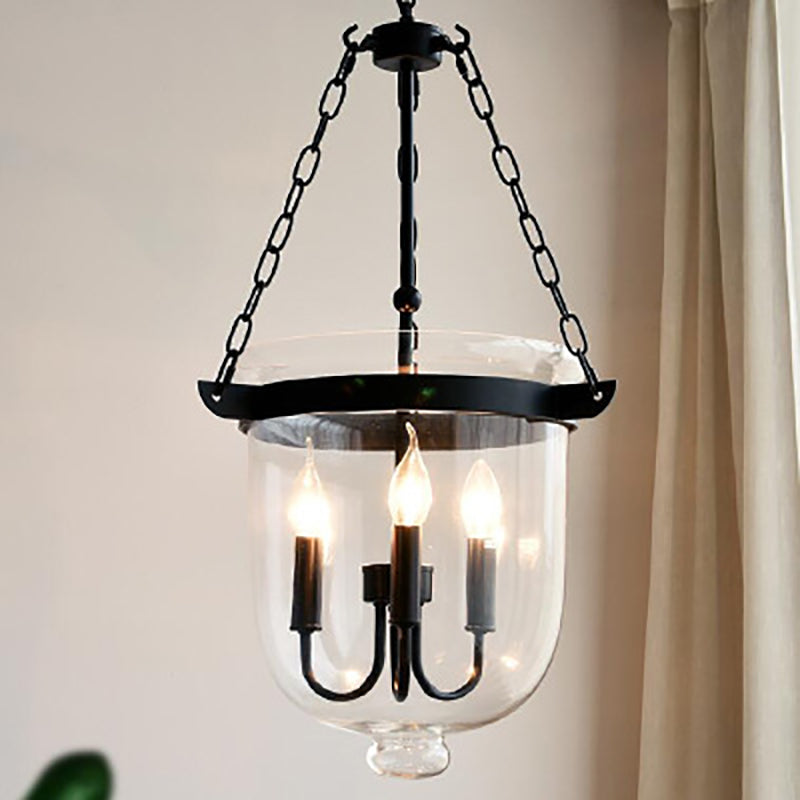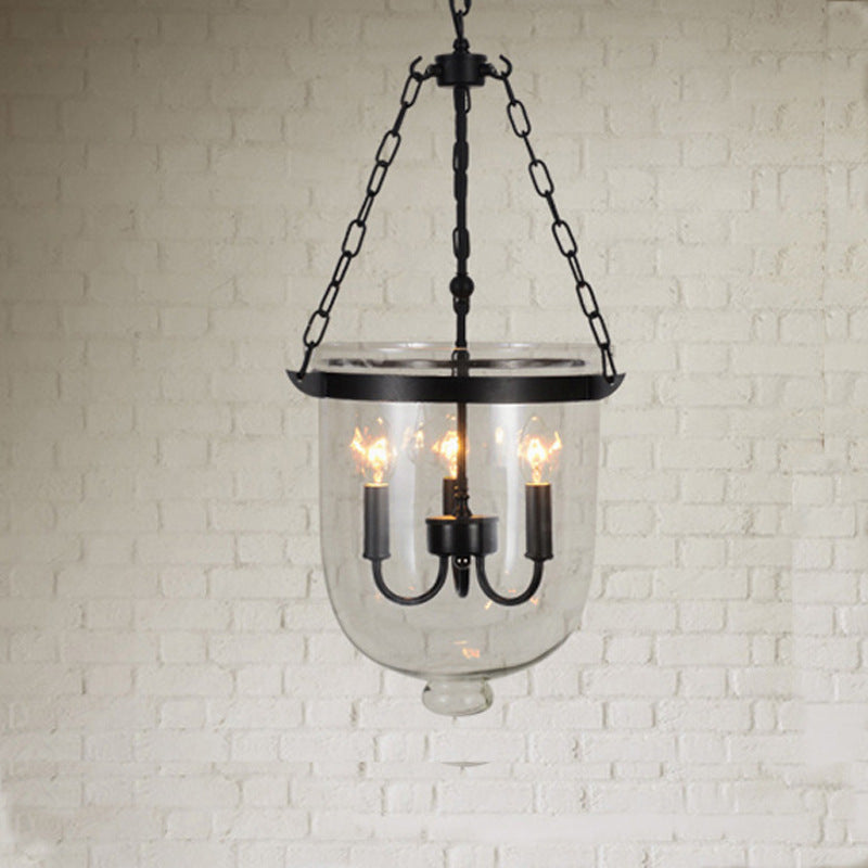 Industrial Creative Style Hanging Light Wrought Iron Pendant Light with Glass Shade