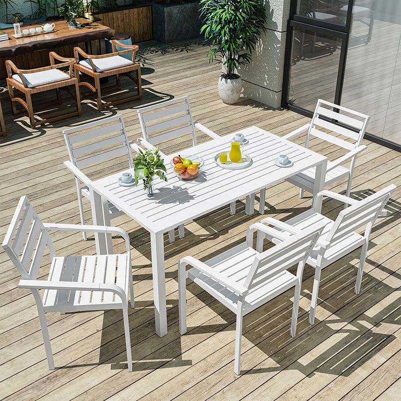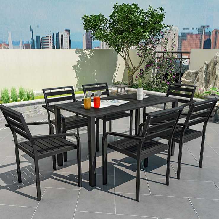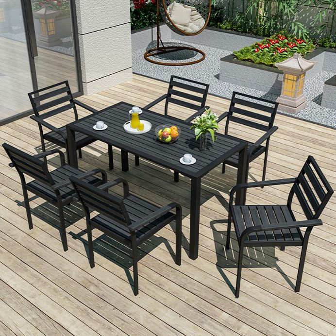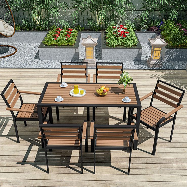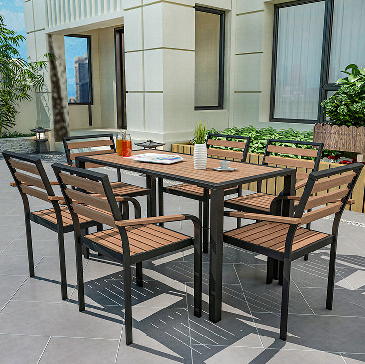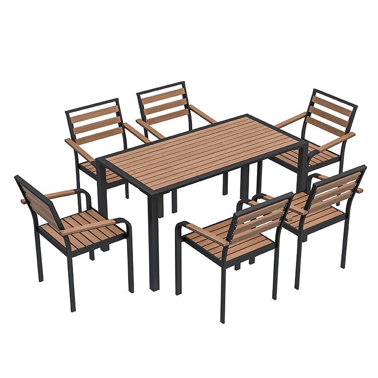 Industrial Geometric Patio Dining Table 1/5/7 PCS Plastic Wood Dining Set