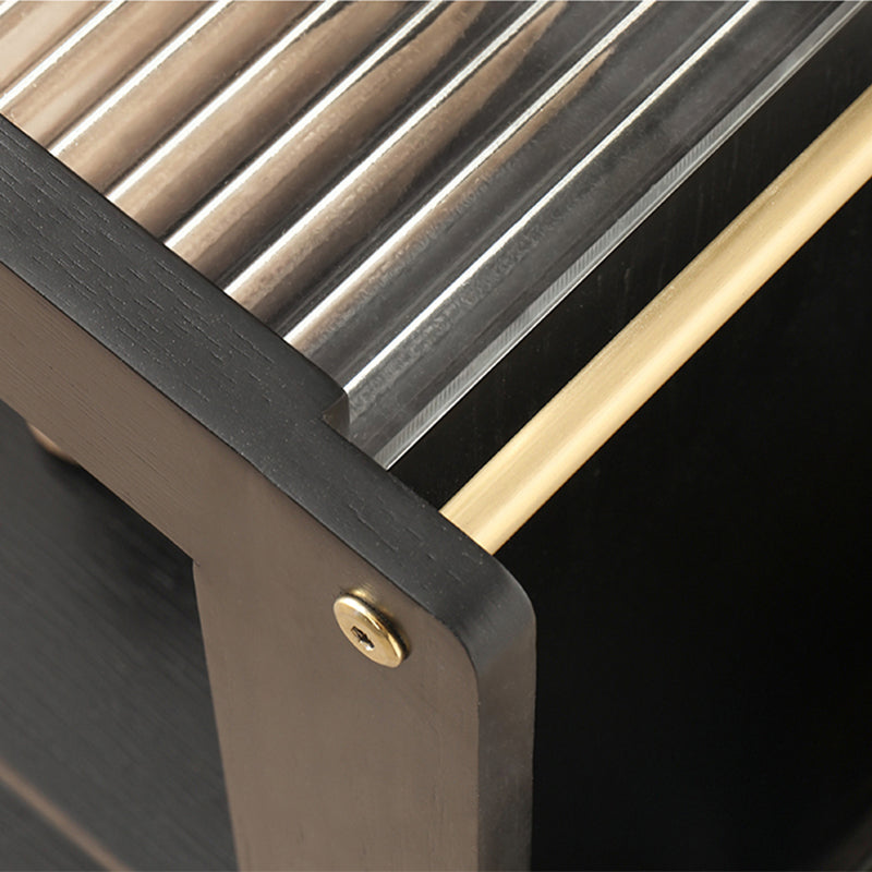 Industrial Sofa Side Accent Table with Glass Top and Storage Shelves