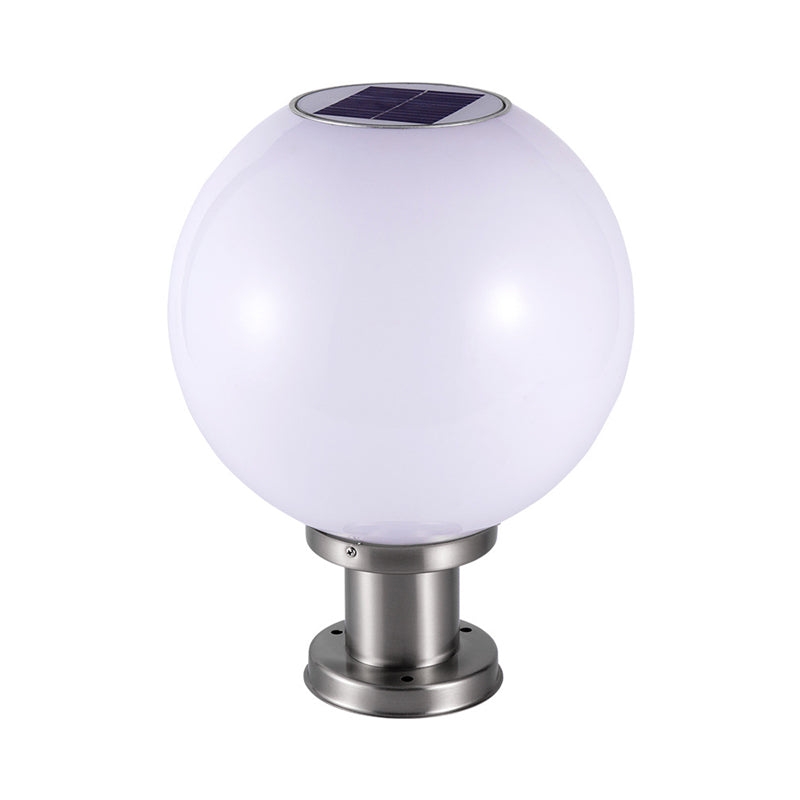 Industrial Sphere Shaped Solar Post Light Acrylic LED Landscape Lamp in Silver for Courtyard