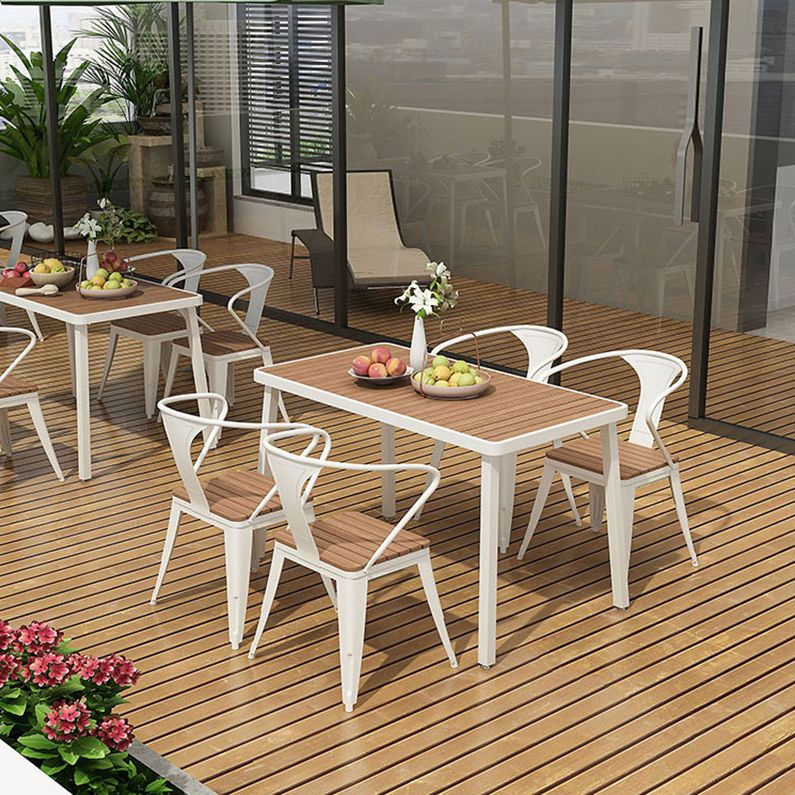 Industrial Style 1/3/5 Pieces Metal Dining Set Reclaimed Wood Table Set for Outdoor