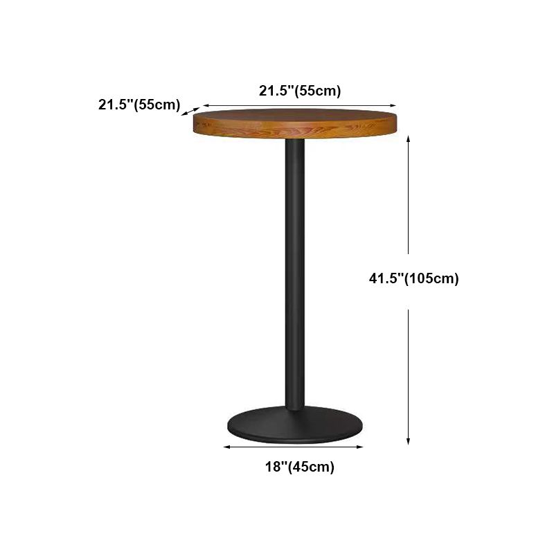 Industrial Style Black Iron Bar Table Wood Brown Top Bistro Table with Pedestal