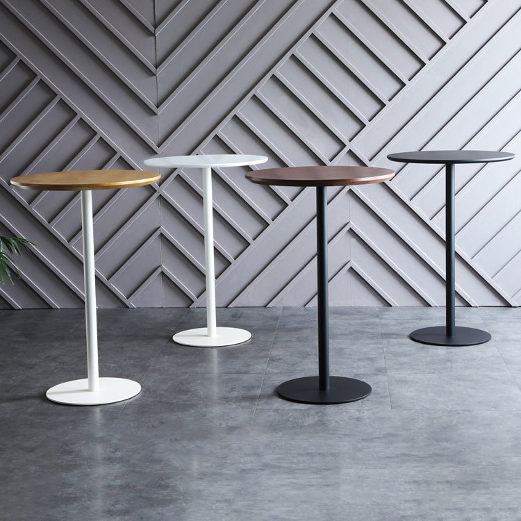 Industrial Wood Bar Dining Table Round Indoor Bistro Table with Single Pedestal