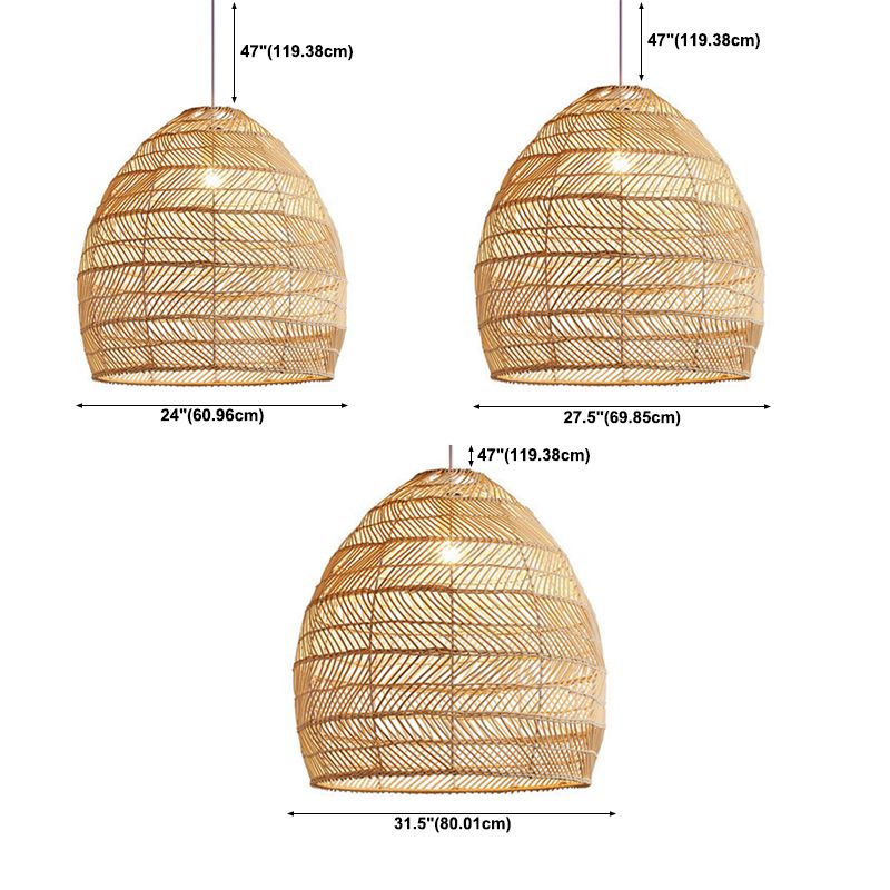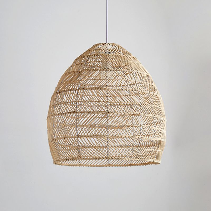 Japanese Hanging Lamp Kit 1-Light Beige Rattan Down Lighting Pendant for Study Room