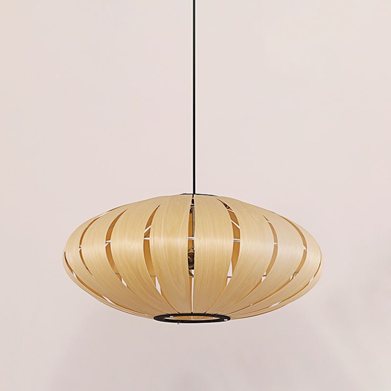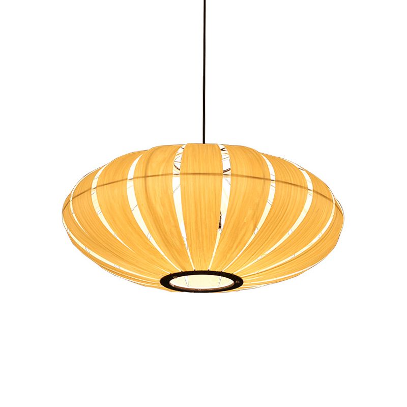 Japanese Lantern Pendant Chandelier Wood 3 Heads Suspended Lighting Fixture in Beige