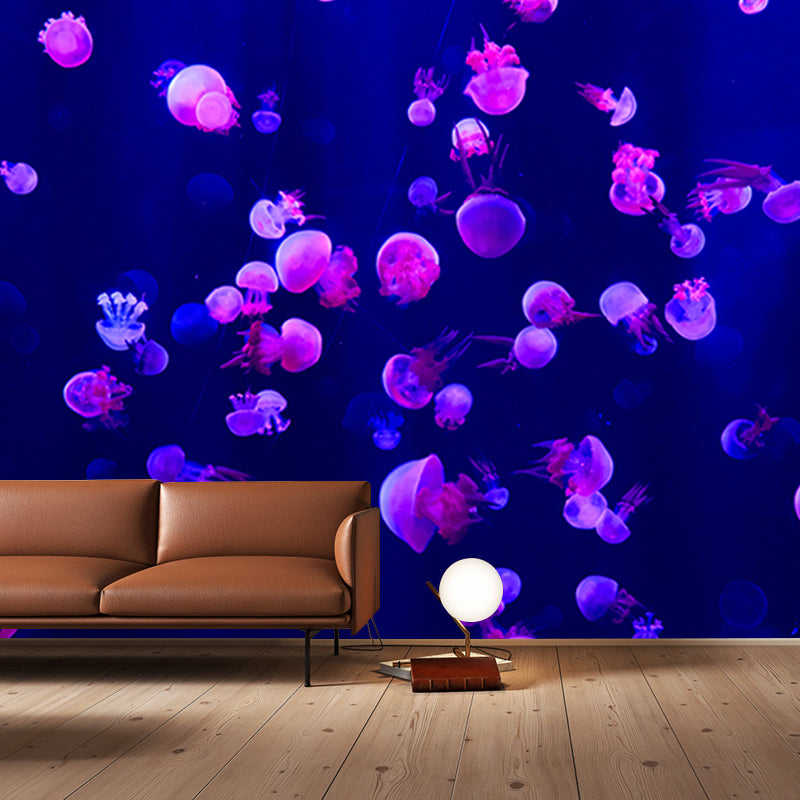Jellyfish Print Tropical Beach Style Seabed Mural Wallpaper Mildew Resistant for Bathroom
