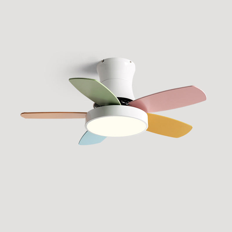 Kids Style Round Shape Ceiling Fan Lamp Metal 1-Light LED Ceiling Fan Light