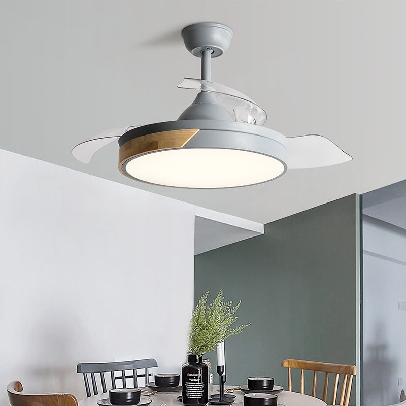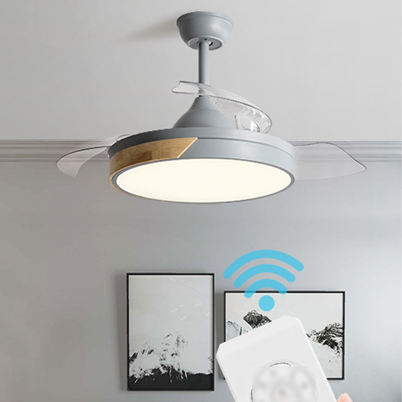 Kids Style Round Shape Ceiling Fan Light Metal 1-Light LED Ceiling Fan Lamp
