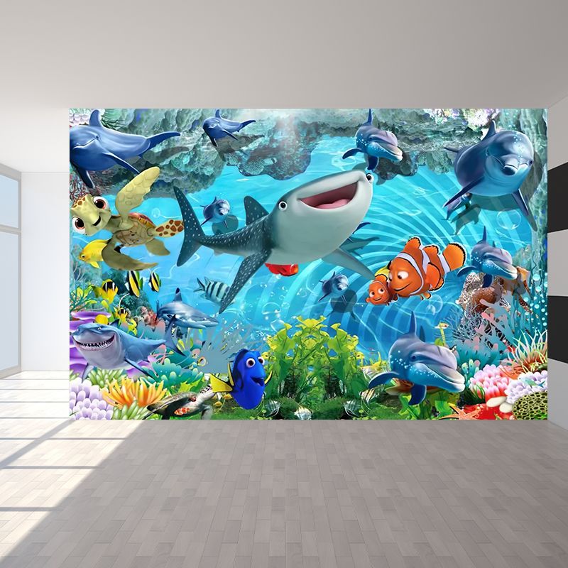 Kids Tropical Undersea Life Mural Decal Blue Moisture Resistant Wall Decor for Nursery