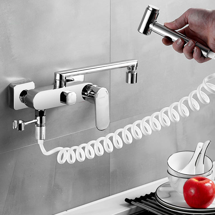 Kitchen Faucet Single Lever Handle Swivel Spout Chrome 2 Holes Bar Faucet