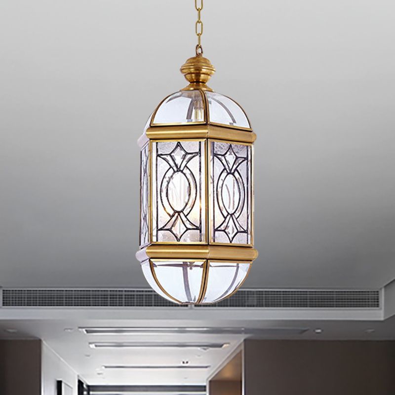 Lantern Outdoor Chandelier Light Colonial Frosted Glass 3 Bulbs Brass Hanging Ceiling Light