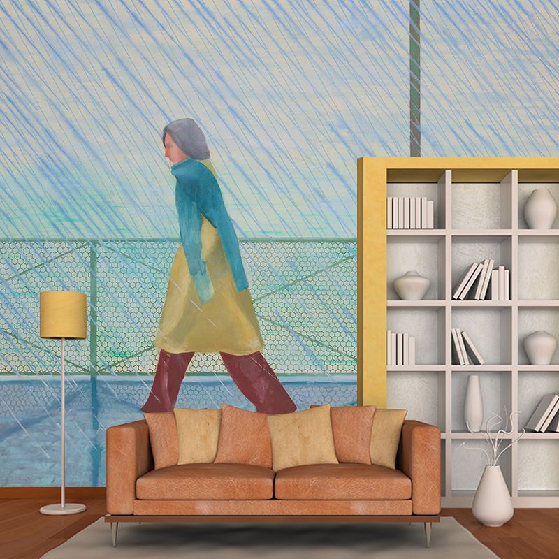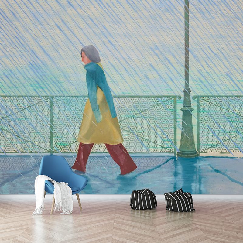 Large Walk in Rain Murals Wallpaper Moisture Resistant Artistry Bedroom Wall Decor