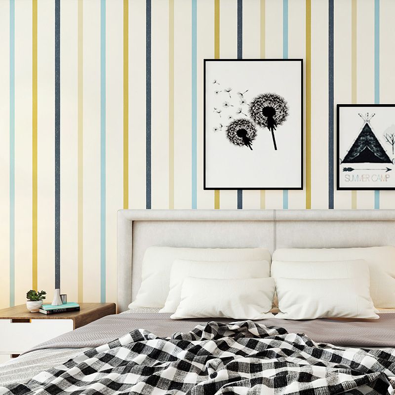Latitudinal Stripe Wallpaper Roll for Kids Bedroom in Natural Color, 20.5"W x 33'L