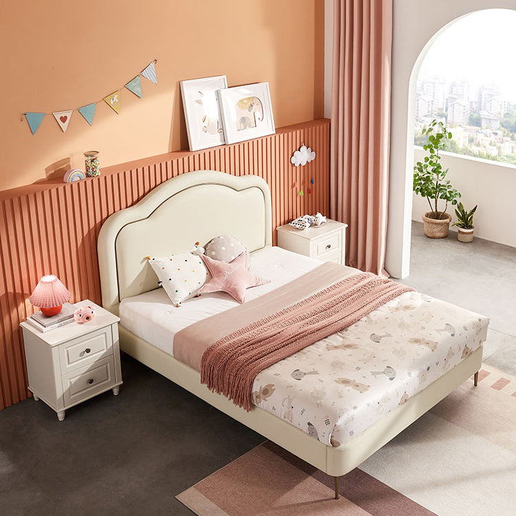 Leather Upholstered Standard Bed Solid Wood Simple Platform Bed with Mattress