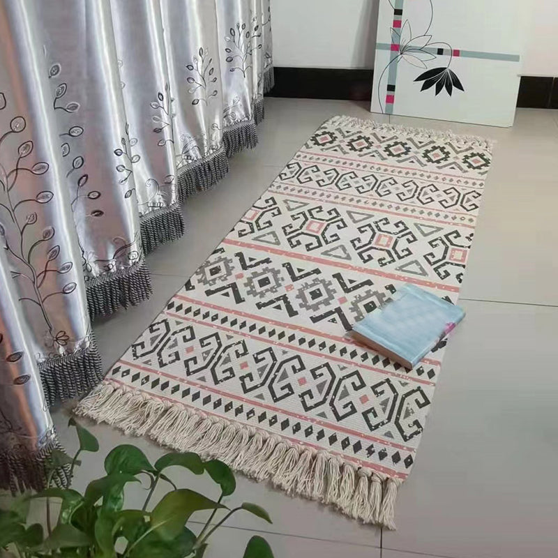 Light Beige Graphic Rug Polyester Modern Rug Washable Area Rug for Living Room
